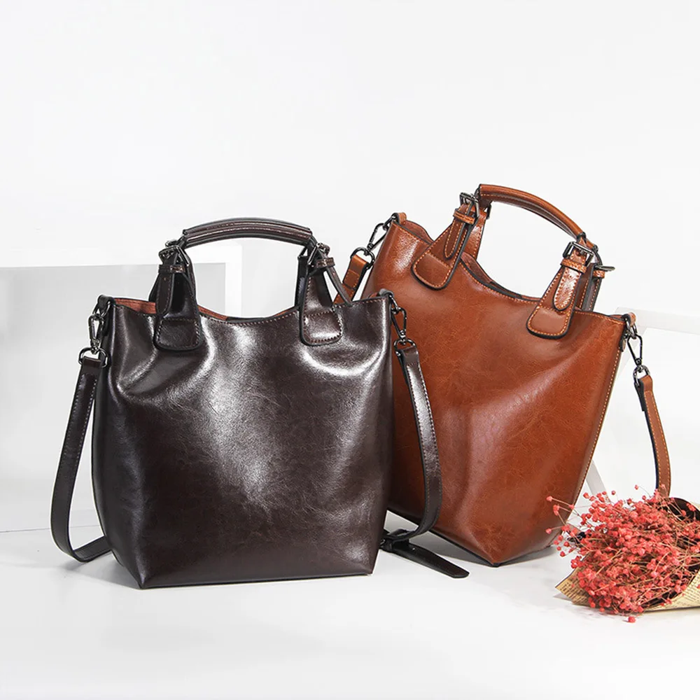 Женская сумка-тоут из натуральной кожи, в стиле ретро