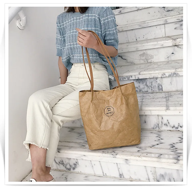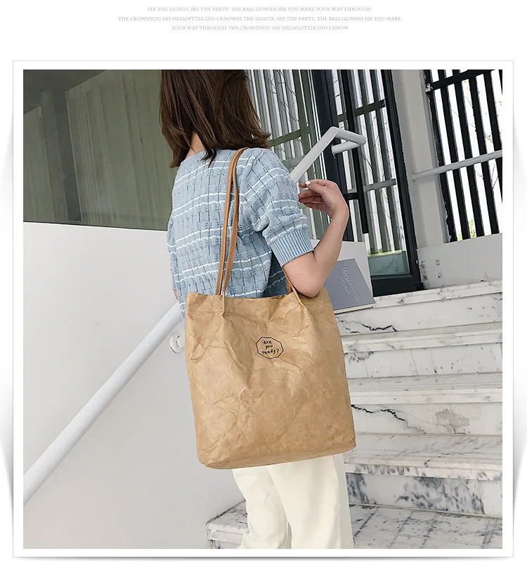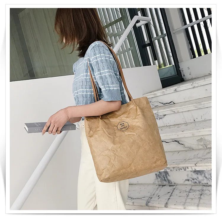 Сумка на плечо Public GS женская из крафтовой бумаги, легкая складная моющаяся Сумочка для покупок, Повседневная Экологически чистая, 2020