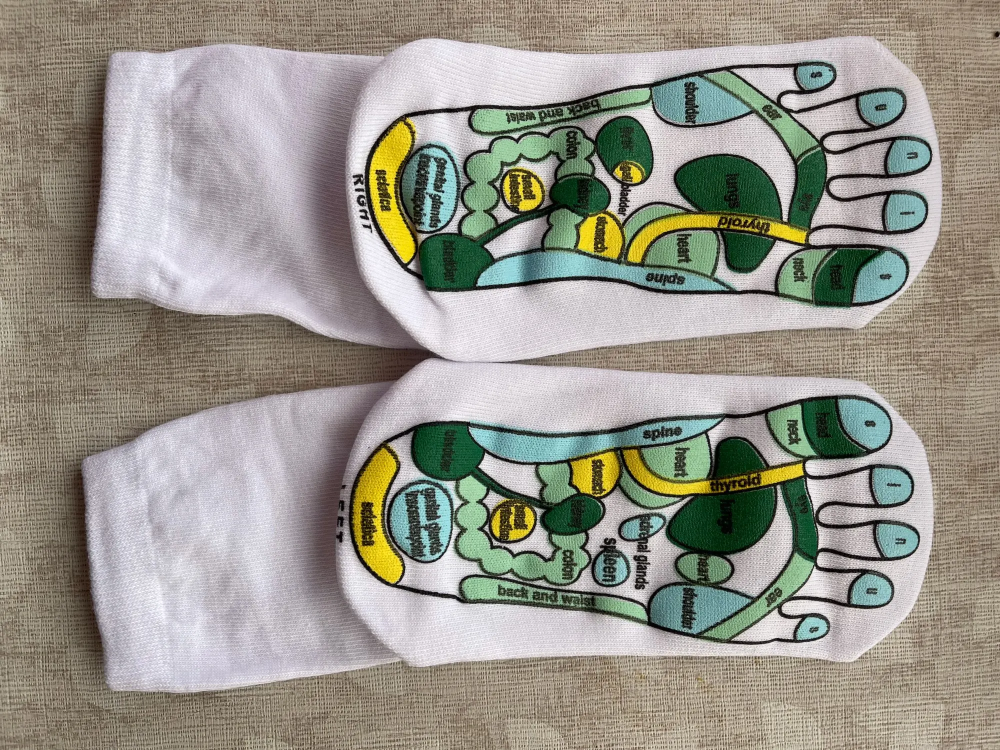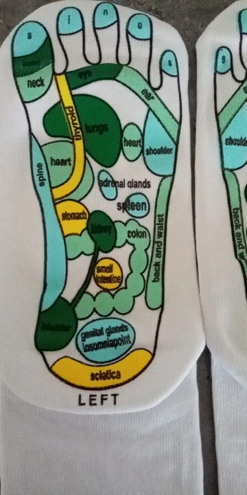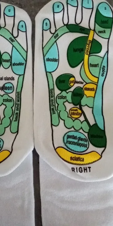 Качество этих носков удивило. Я думал, что он будет тонким и хрупким, но нет, его толстый и может растягиваться удобно. Я также думал, что изображение акупрессуры будет частью носка, как сшито, но нет, он был просто напечатан на нем, таким образом, он не будет растягиваться в соответствии с вашими ногами. Тем не менее, с оценкой, я все еще могу получить область, которую мне нужно исправить.
