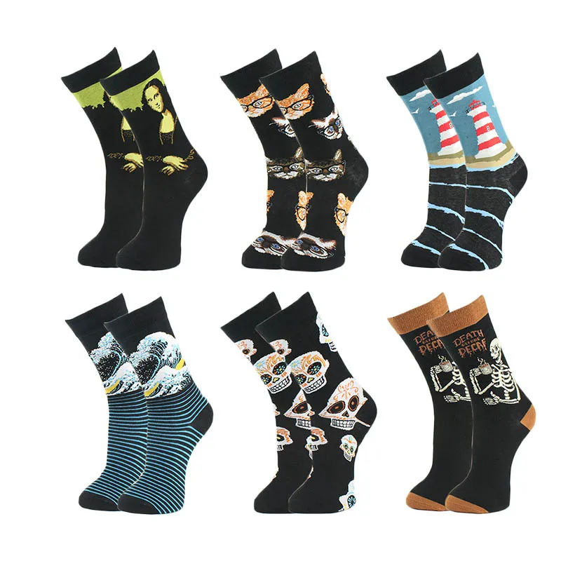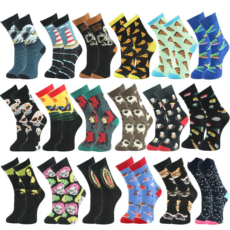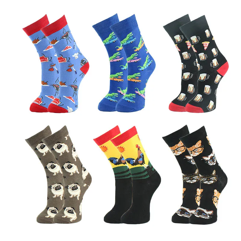 Носки WPLOIKJD мужские из чесаного хлопка, жаккардовые, в стиле хип-хоп, с изображением животных, еды, индивидуальные подарки