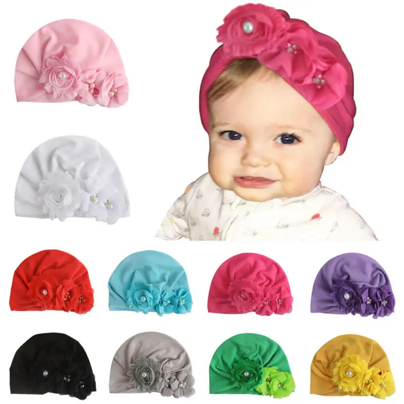 Головные уборы для новорожденных мальчиков и девочек, теплая хлопковая шапка с цветочным принтом и жемчужинами, 2019
