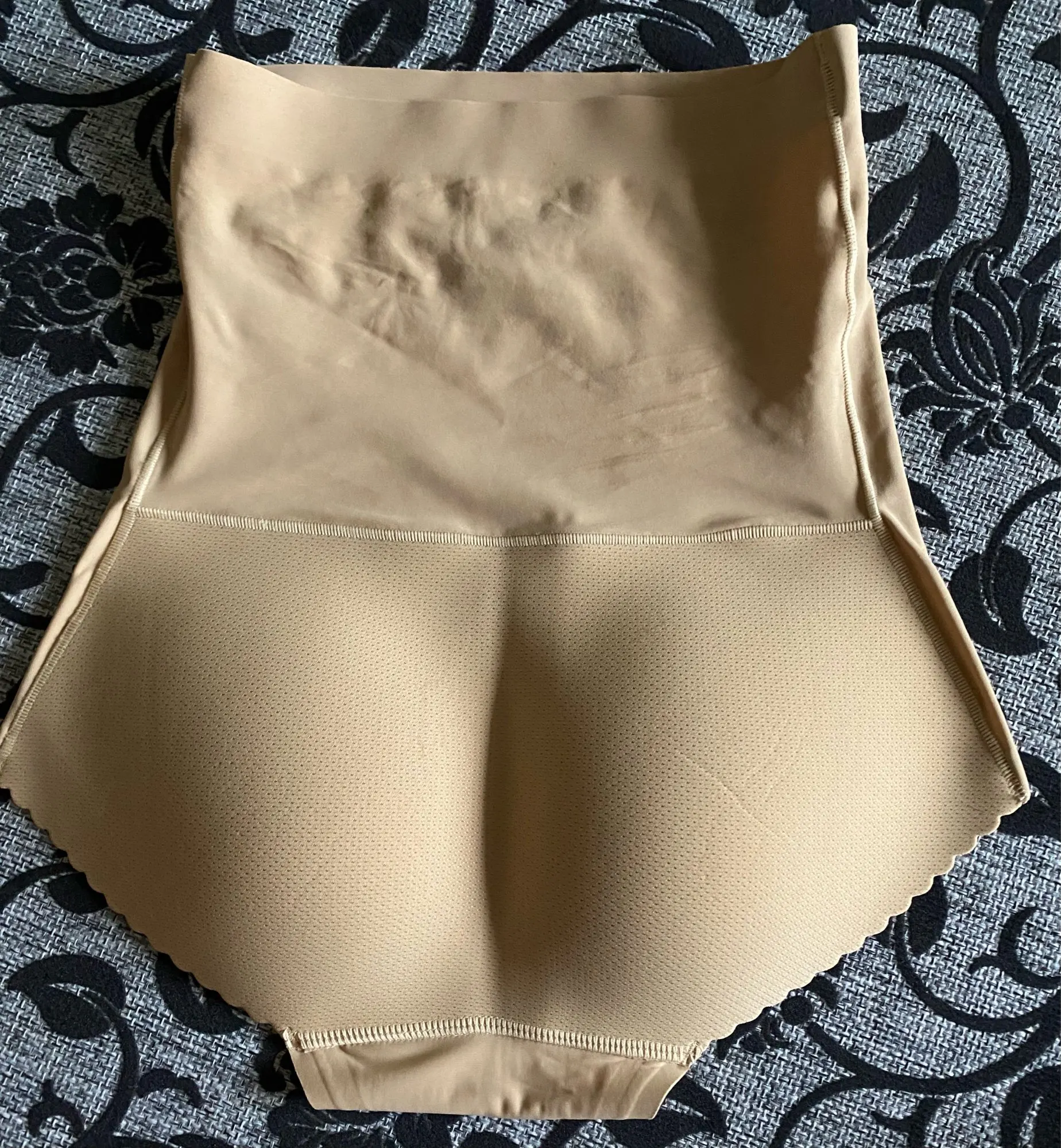 Заказала 16 фев., пришло 11 марта на почту в Москве, объединили с другим заказом. Упаковано в пакет и зип-пакет. Трусы аккуратные, приятный материал. На параметры ОБ 104, ОТ 77 подошли. Цвет темнее телесного, утяжка в районе талии не очень сильная, бока выпирают. Пушап невыраженный, низкая посадка, поэтому эффекта особого не увидела. Так себе, можно зимой носить для утепления.