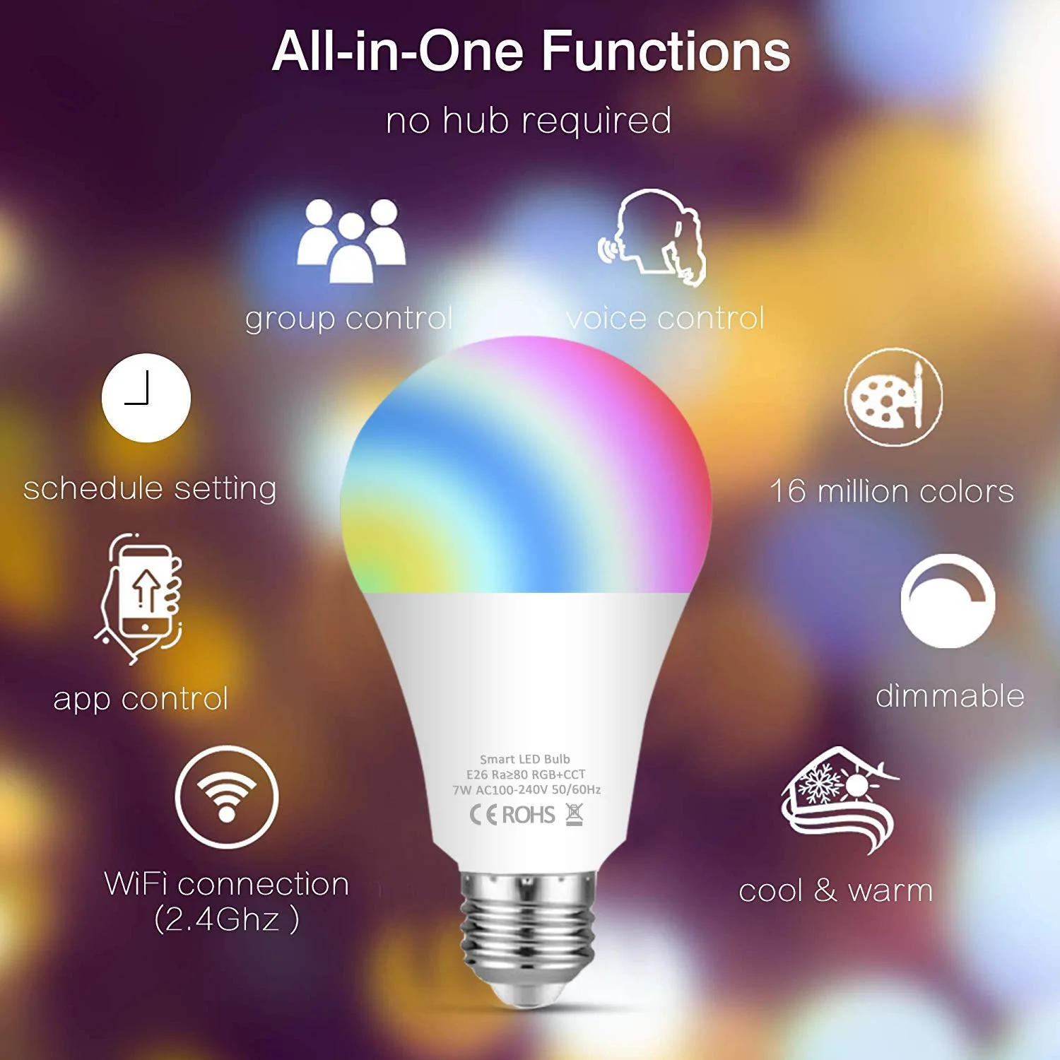 Умная Светодиодная лампа 12 Вт RGB с Wi-Fi, E26, E27, B22, лампа для голоса, работает с amaze alexa, echo, Google Home, умная лампа с дистанционным управлением