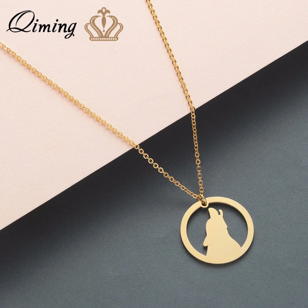 Ожерелье QIMING в стиле панк с волком для женщин и мужчин, ювелирные изделия, аксессуары из нержавеющей стали, крутая винтажная цепочка с животными