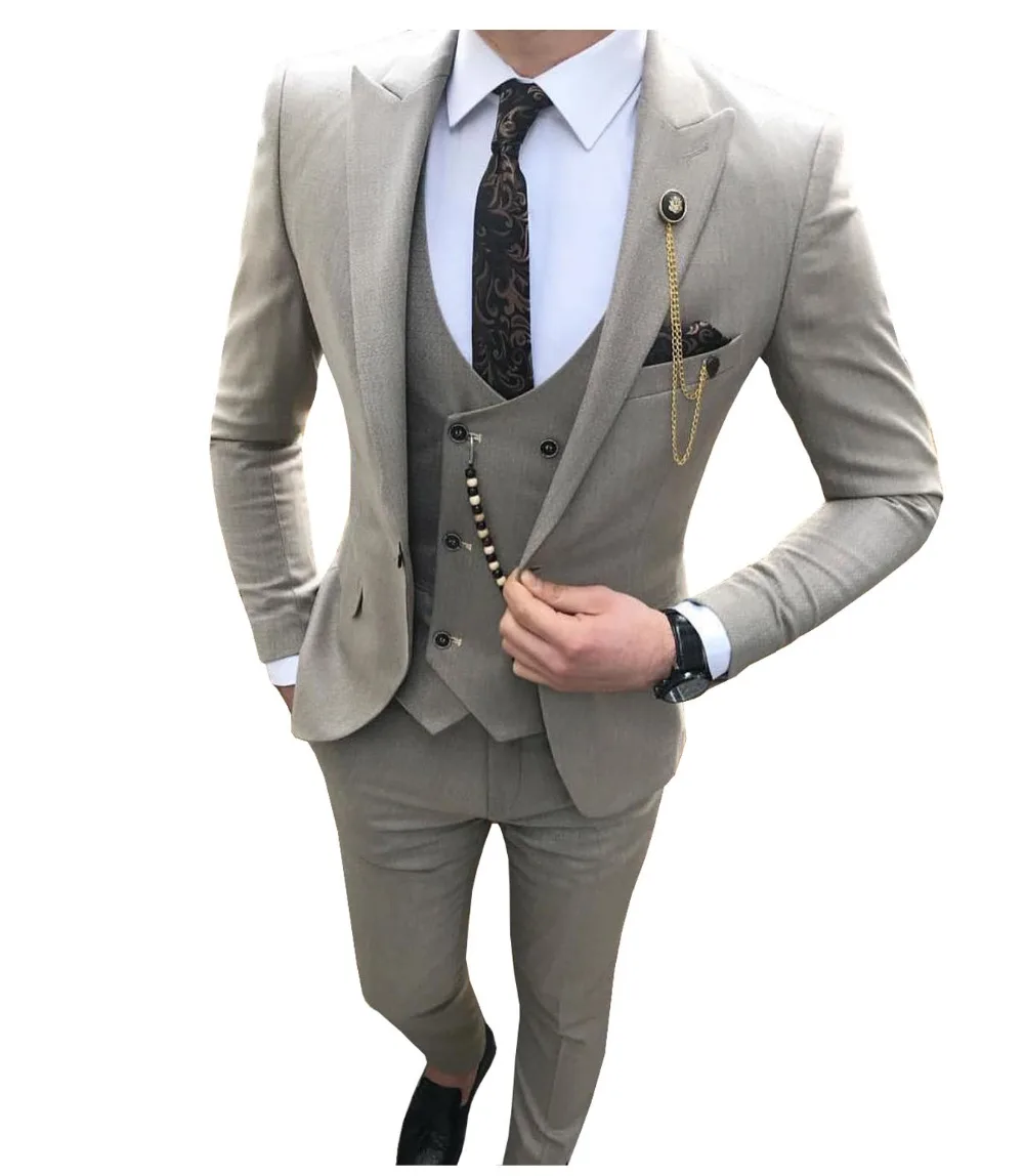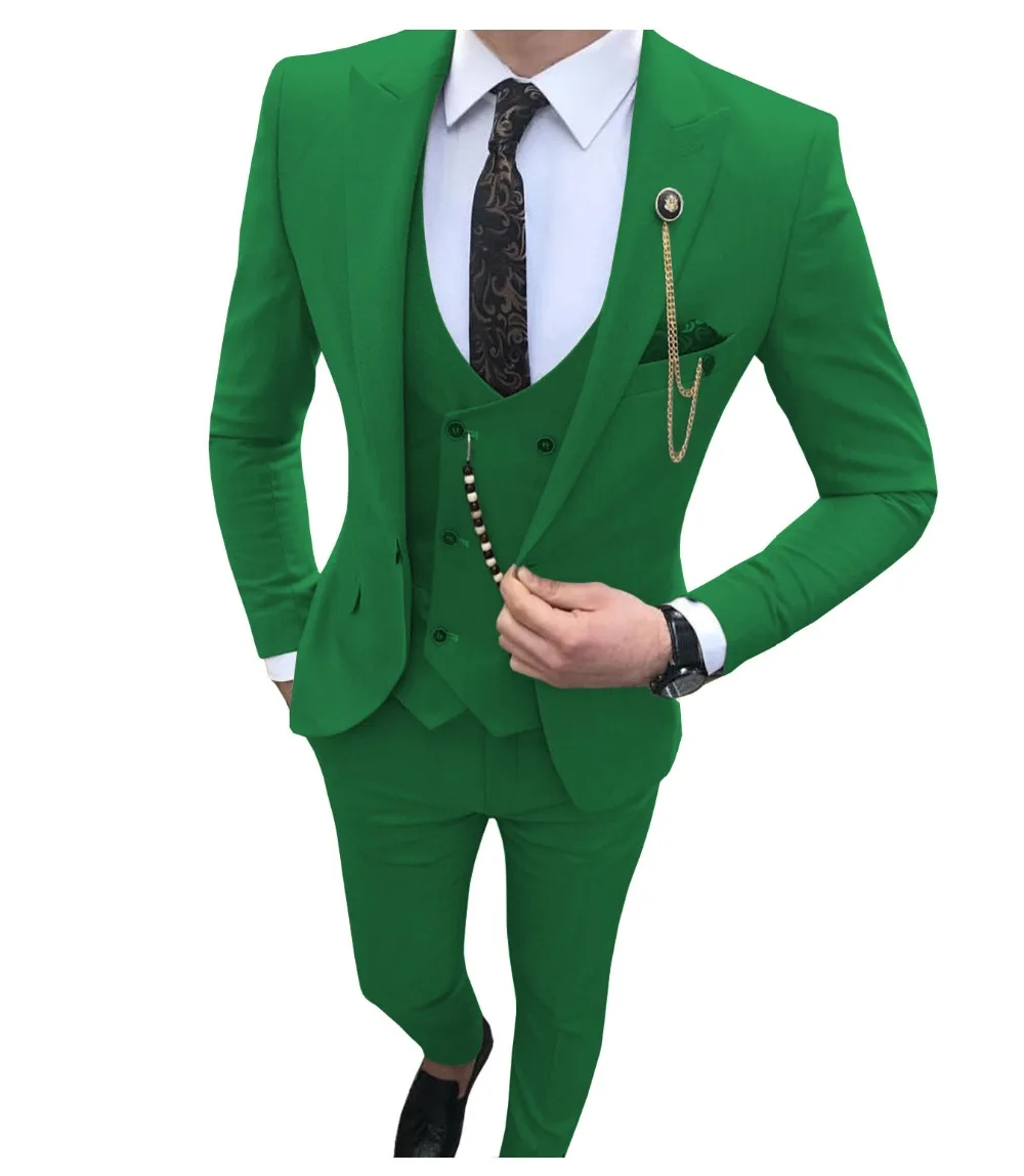Мужские костюмы из 3 предметов, облегающие деловые костюмы, яркие смокинги для жениха, деловой свадебный костюм (Блейзер + брюки + жилет)