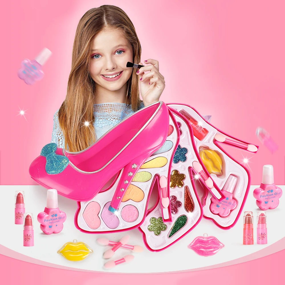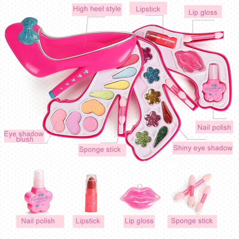 Набор для макияжа для девочек, игрушки, детский косметический чехол на высоком каблуке, набор инструментов для макияжа, безопасный нетоксичный пластиковый игрушечный косметический набор для девочек