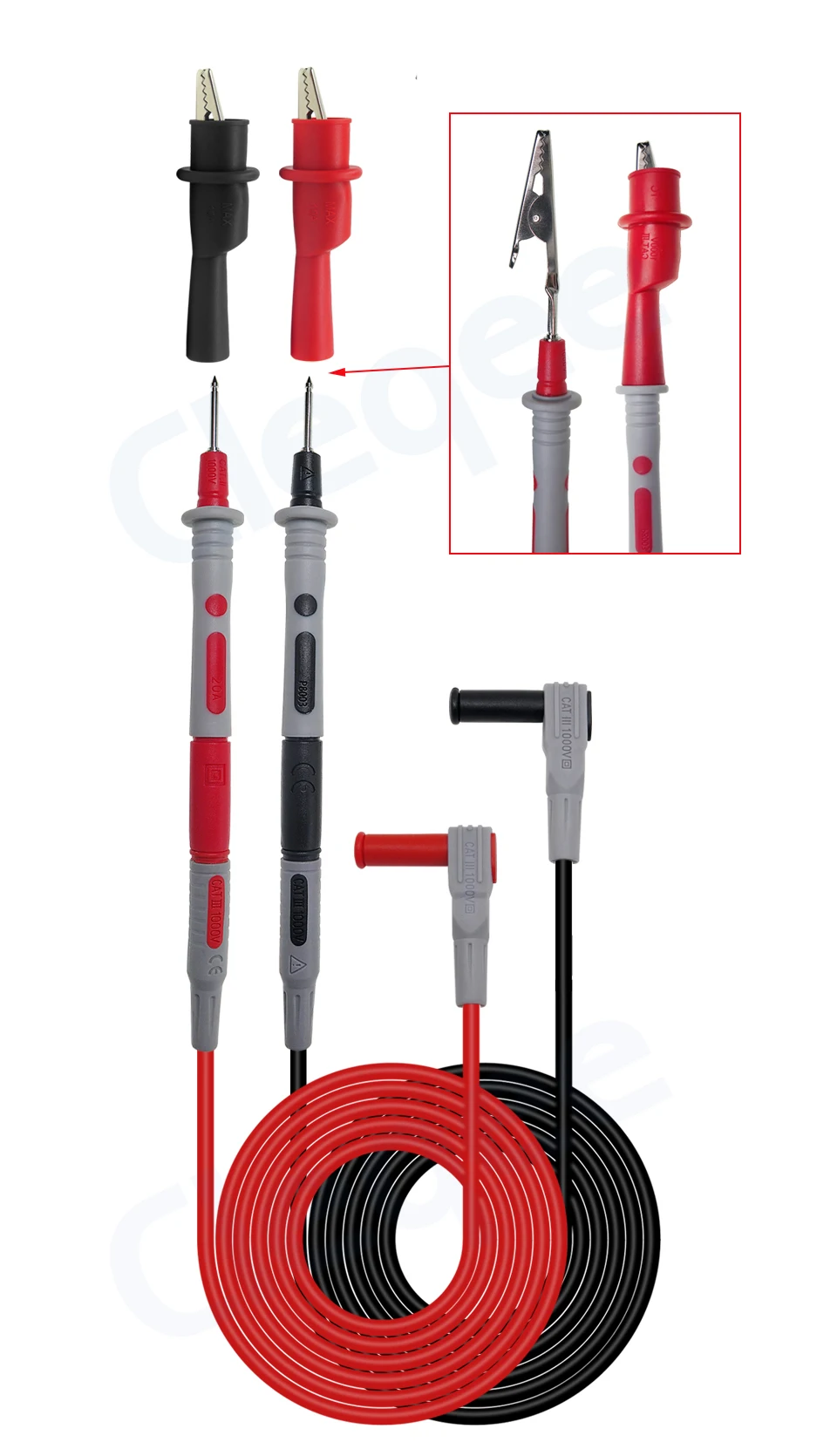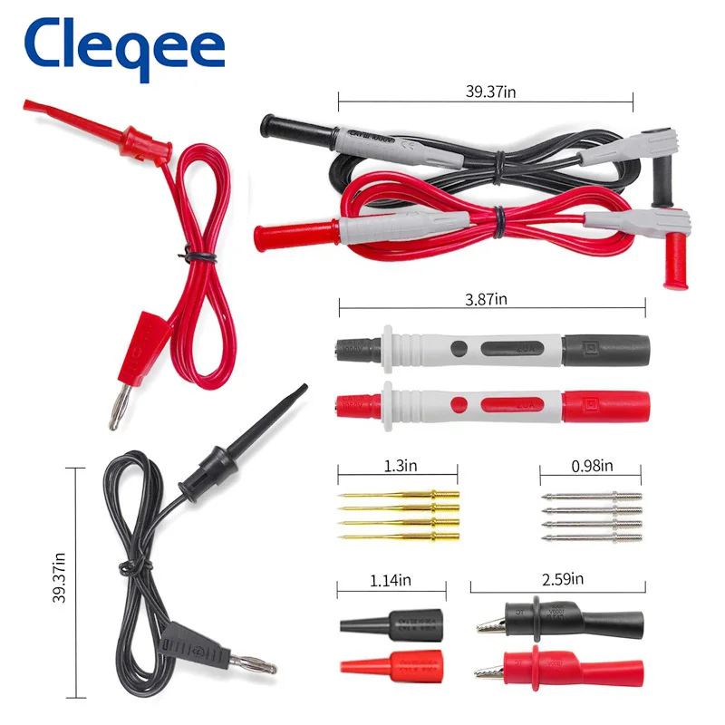 Набор тестовых проводов Cleqee P1308B для мультиметра со сменными иглами, зажимы типа крокодил, штекер типа банан 4 мм