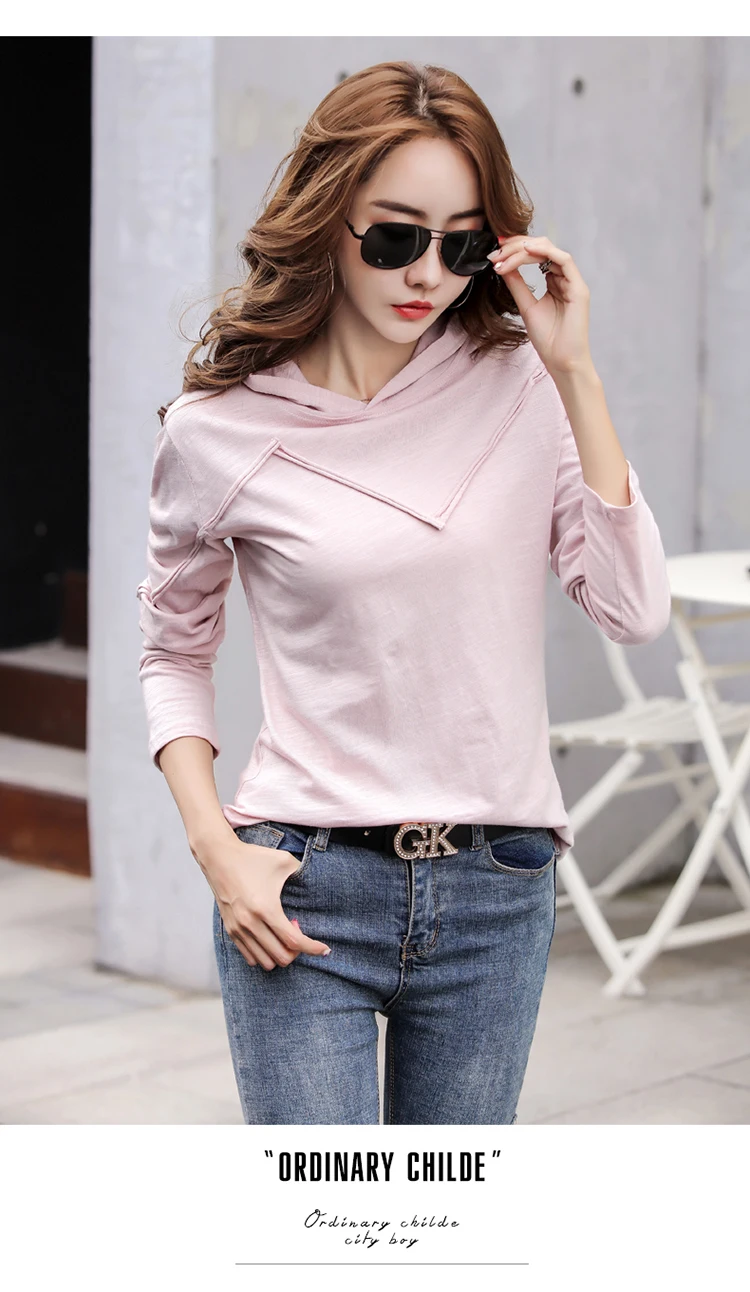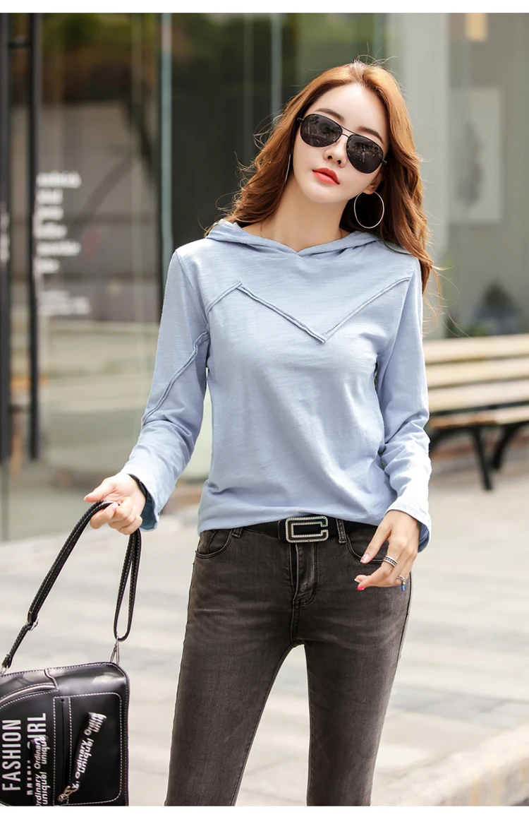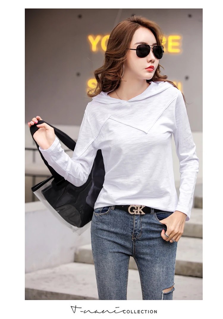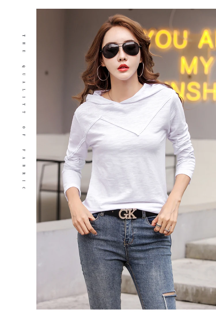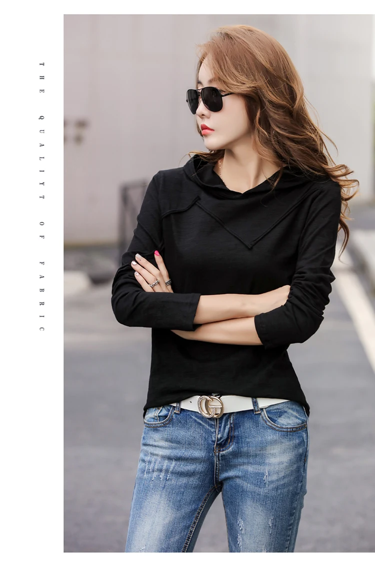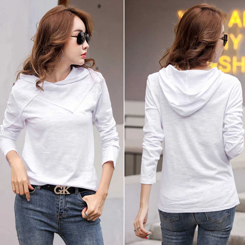 Женская футболка с капюшоном, из бамбукового хлопка, с длинными рукавами, повседневная, черная, белая, осенне-зимняя, 2021