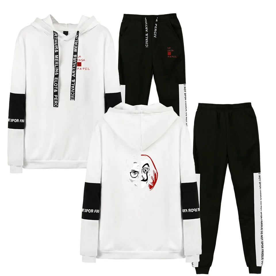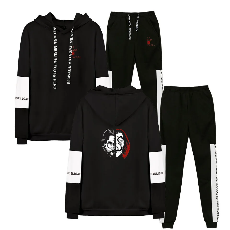 Мужской костюм La casa de papel, черный костюм с принтом денег, толстовка с длинным рукавом, толстовка с капюшоном, 2019