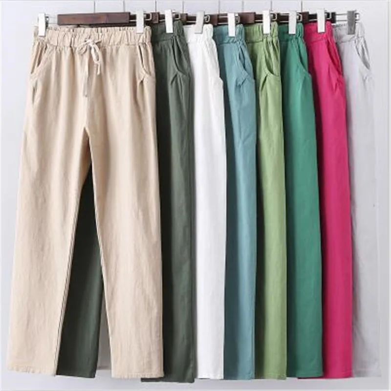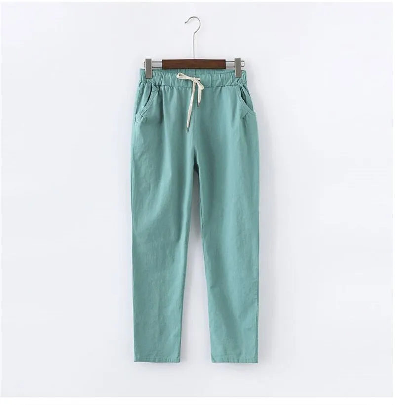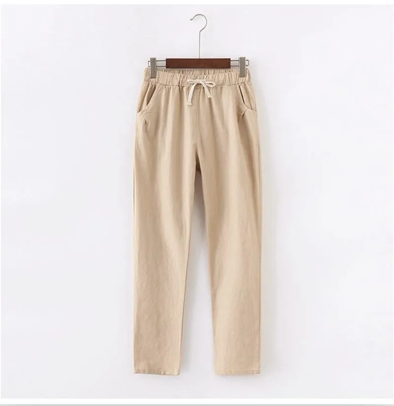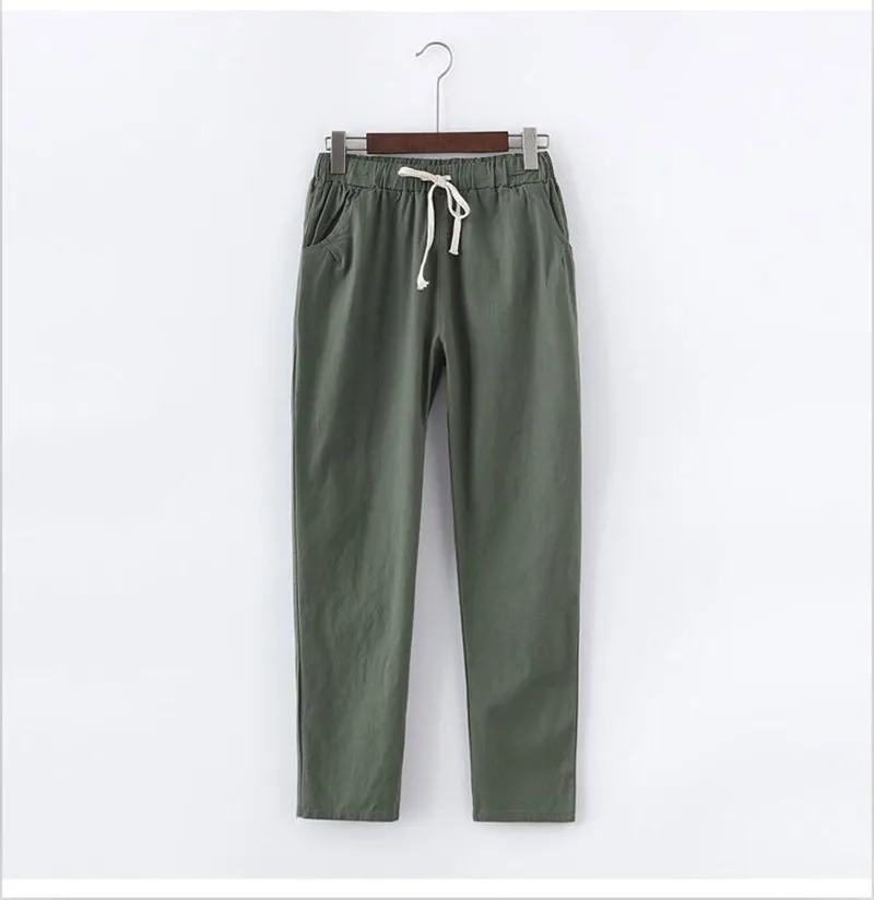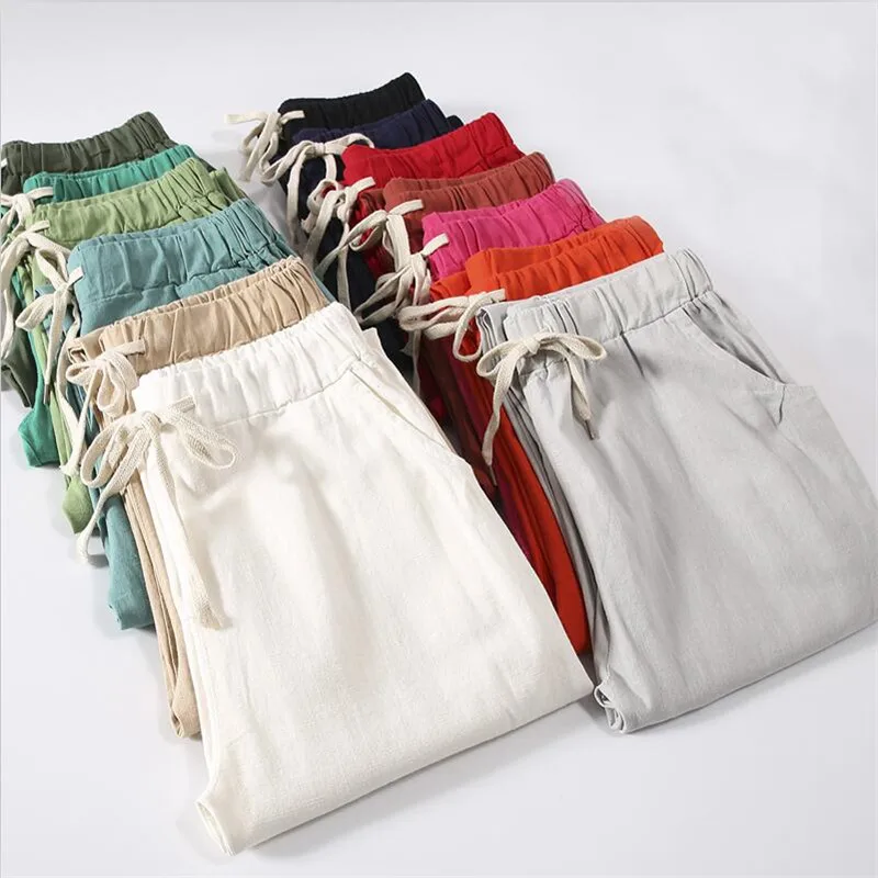 Брюки женские до щиколотки, повседневные штаны-карандаш из хлопка и льна, весна-лето