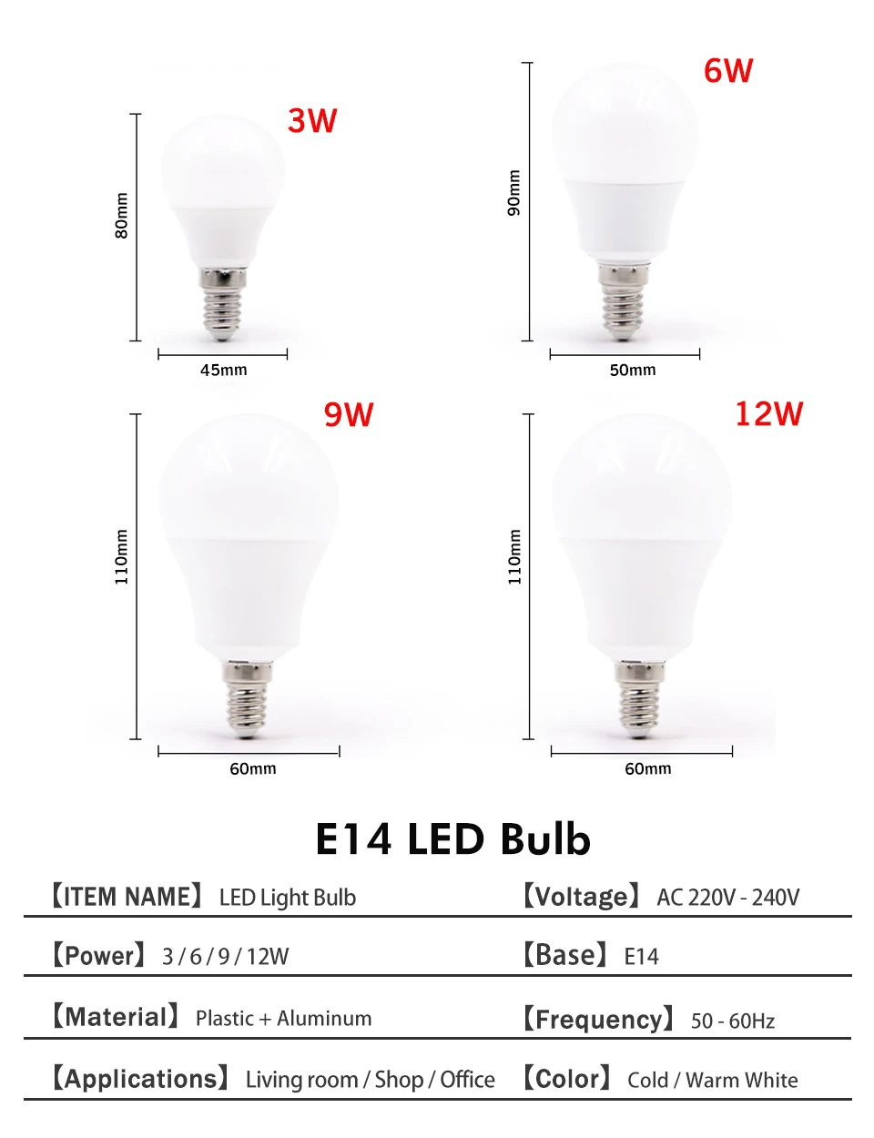 Светодиодные лампы 3 Вт, 6 Вт, 9 Вт, 12 Вт, 15 Вт, 18 Вт, 20 Вт, E27, E14 светильник 220-240 В, Smart IC, высокая яркость, светодиодсветодиодный лампы