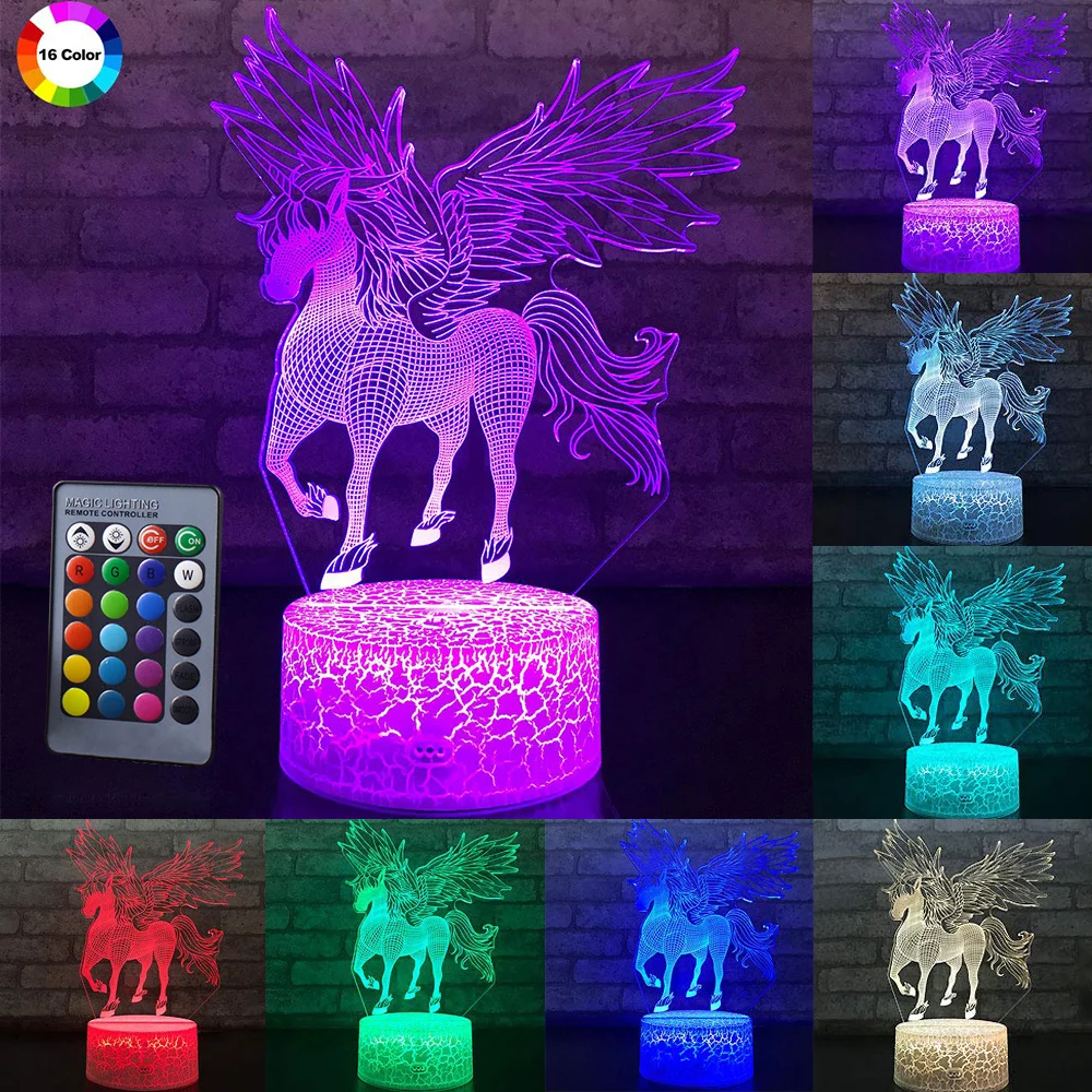 3D светодиодный ночсветильник с дистанционным управлением и сенсорным управлением, единорог, серия 7/16 цветов, светодиодная настольная лампа, детский Рождественский подарок, украшение для дома
