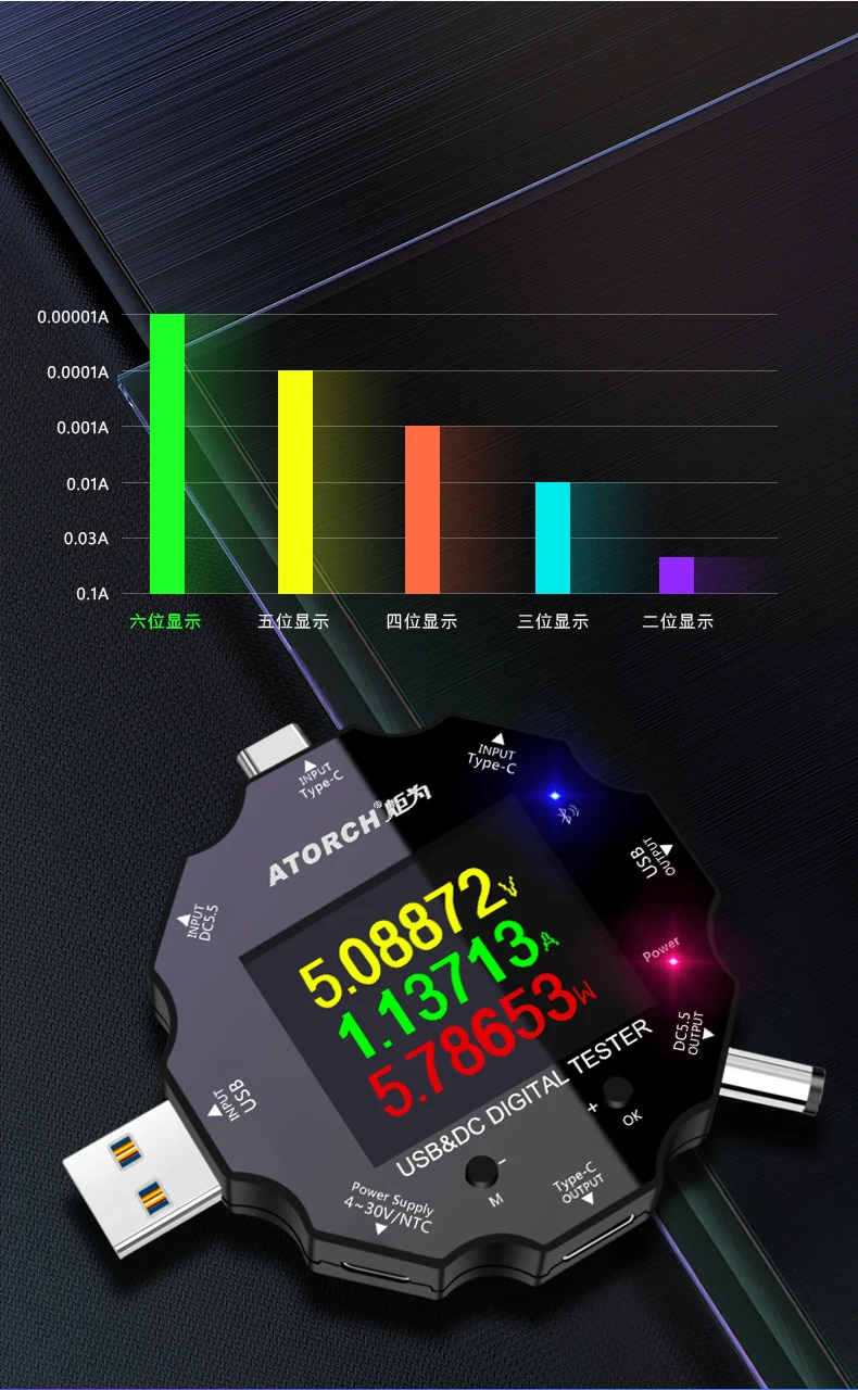 ATORCH использует схему отбора образцов профессионального инструмента, точность измерения напряжения и тока достигает 0,00001
