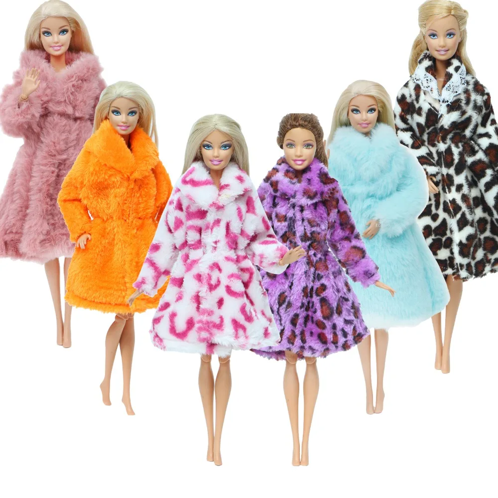 Модное разноцветное пальто, Фланелевое пальто, пушистый халат, зимнее платье, Теплая Одежда для куклы Барби, аксессуары для кукольного домика, детская игрушка сделай сам