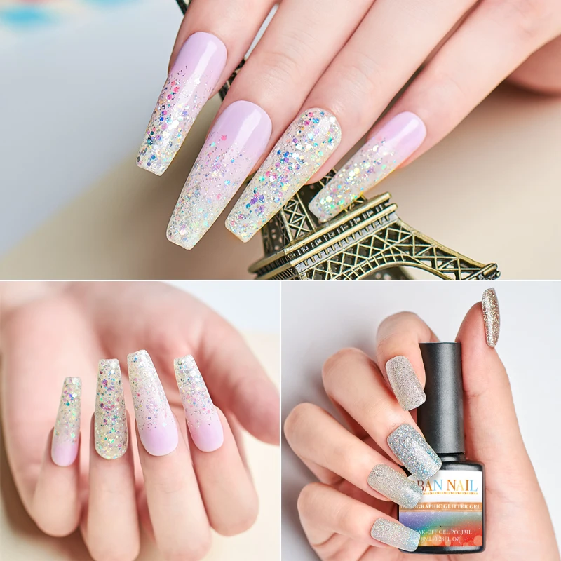 Голографический Блестящий лак для ногтей Блестящий УФ-Гель-лак отмачиваемый Блестящий лак для ногтей с блестками постоянный эмалевый Гель-лак