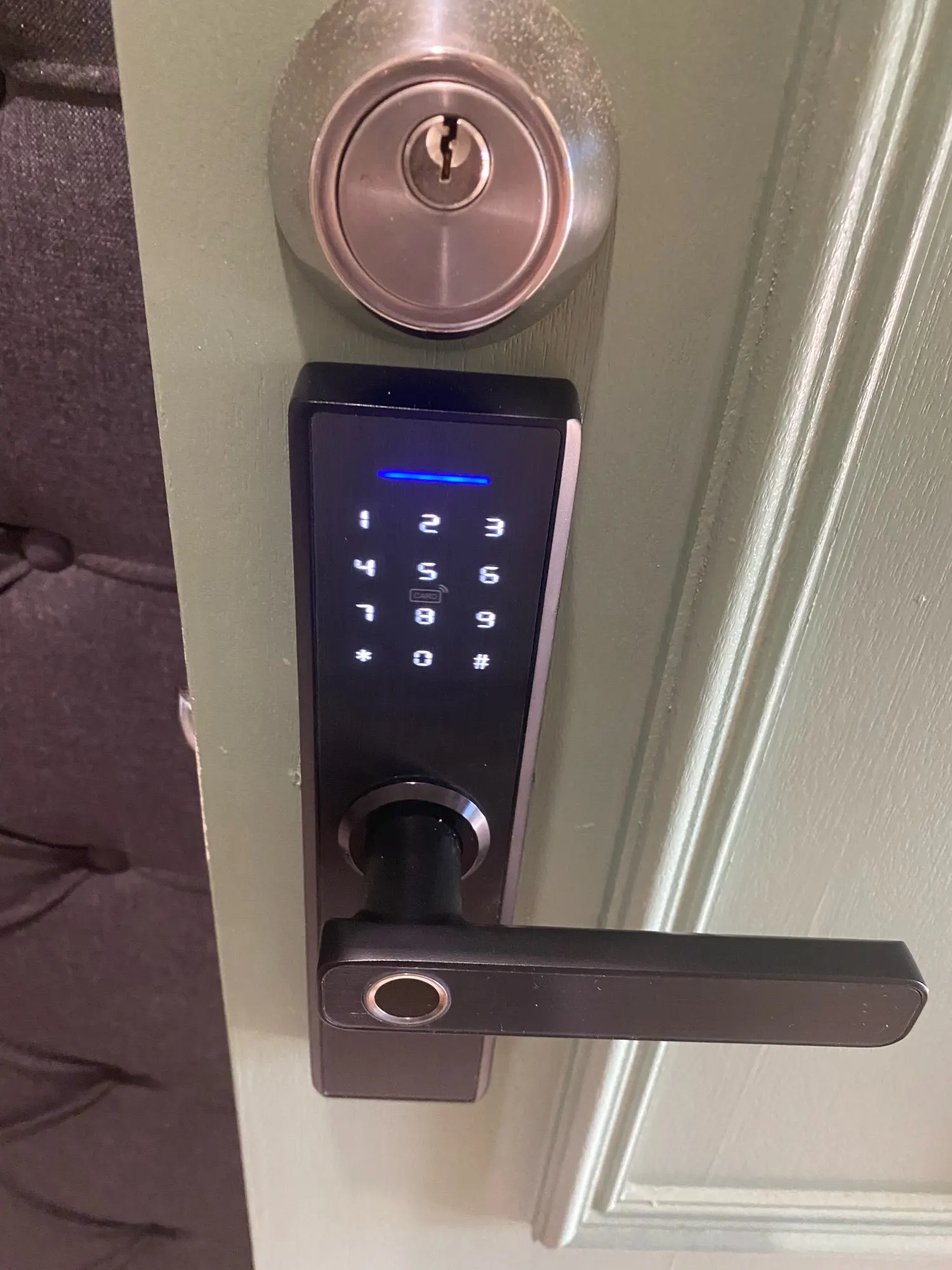 love this door lock, works very well. Tried all the methods to unlock, everything works. It is smaller than I thought, almost not cover the original hole made by the old lock.