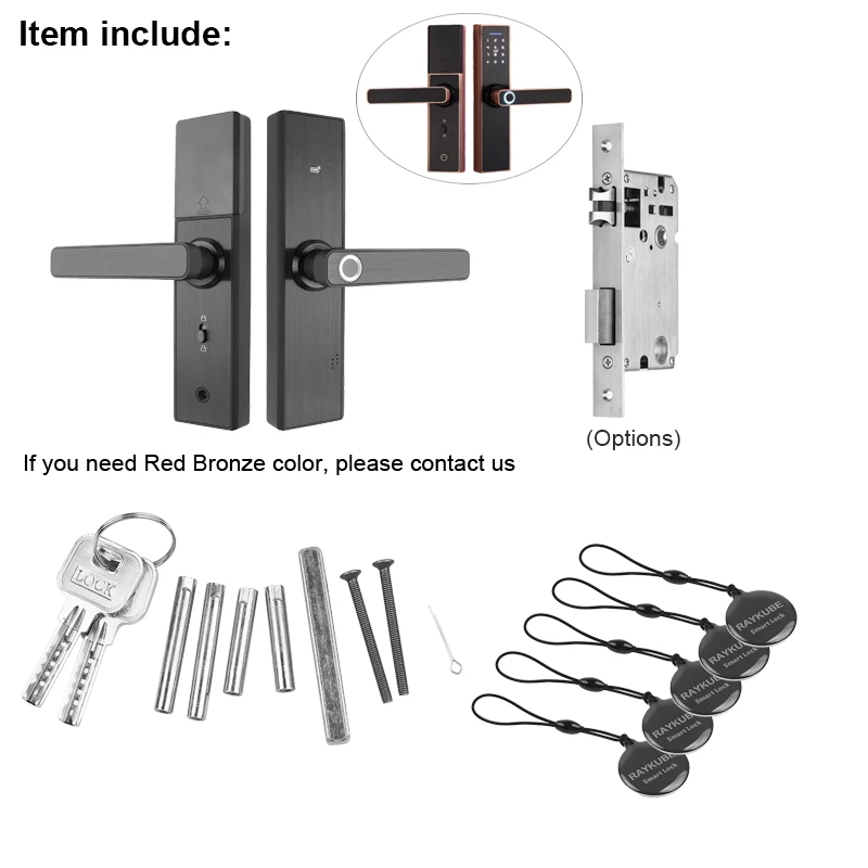RAYKUBE Wifi электронный дверной замок с приложением Tuya удаленно/биометрический отпечаток пальца/смарт-карта/Пароль/ключ разблокировка R-FG5 Plus