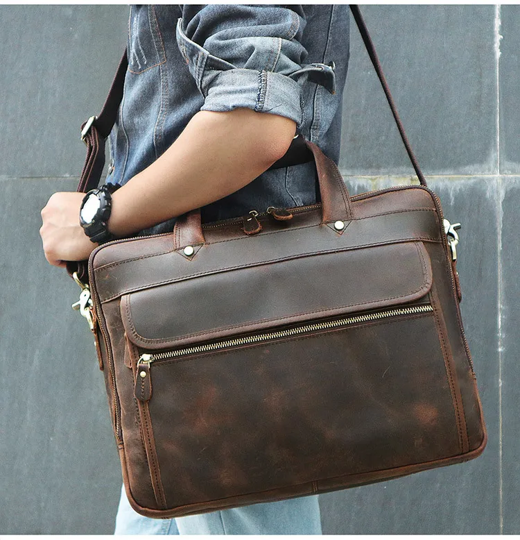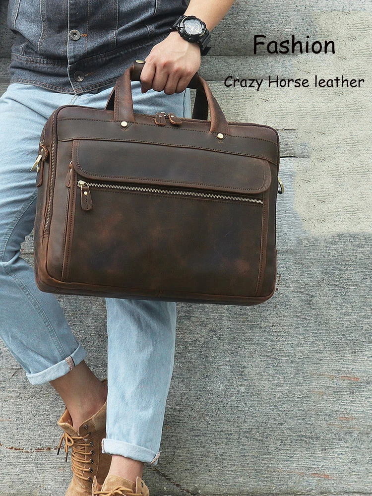 Мужской портфель MAHEU, винтажный дизайнерский портфель для ноутбука, кожа Crazy Horse