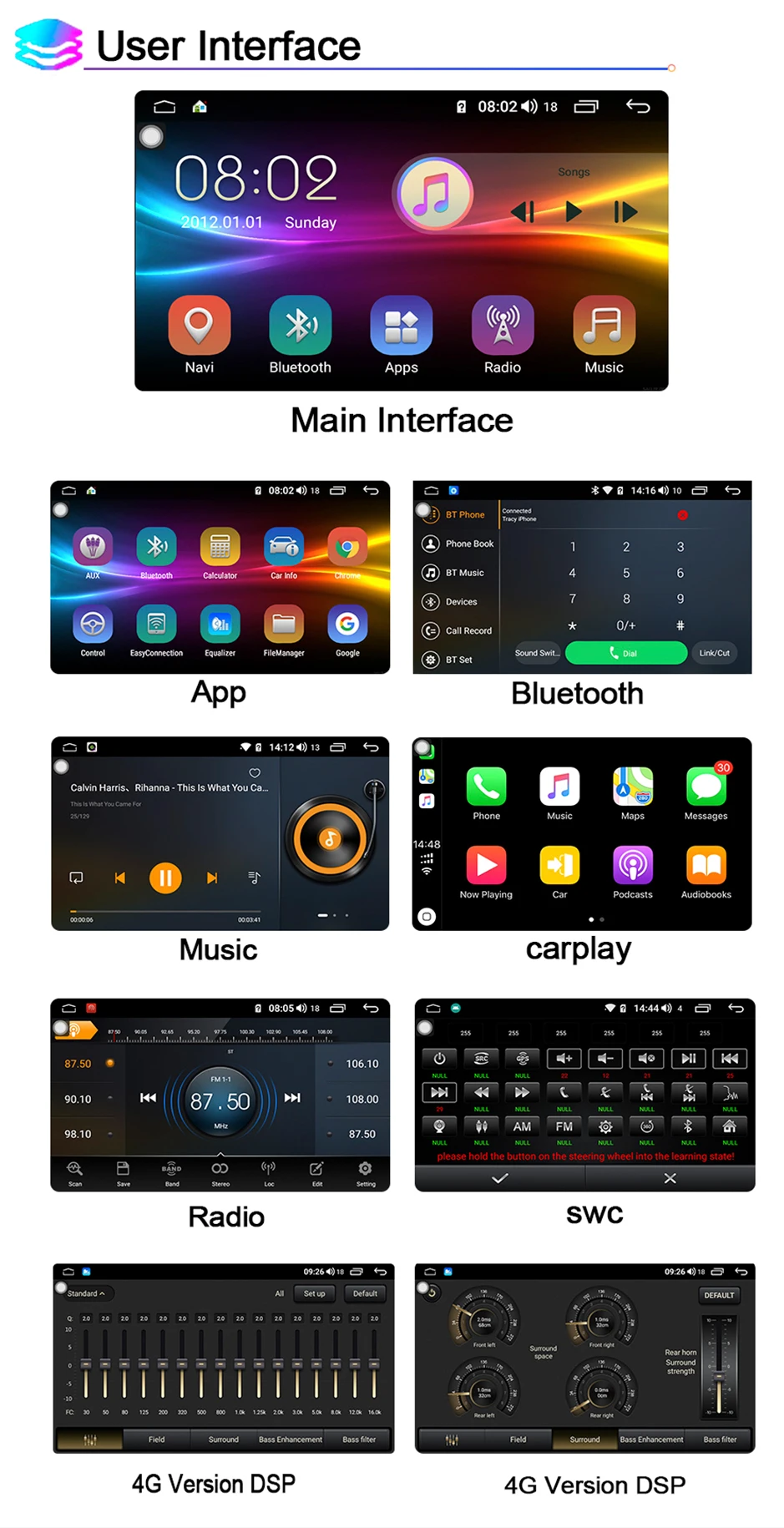 > OSD языкРусский, английский, испанский, итальянский, французский, немецкий, китайский, эстонский, польский, филиппинский, финский, корейский, голландский, хорватский, латышский, литовский, румынский, норвежский, португальский, японский, шведский, тайский, турецкий, украинский, венгерский.> 24H * 7 поддержка обслуживания В COHO Наша цель-продолжать усердно работать, чтобы сделать инновационное оборудование и программное обеспечение автомобильного мультимедийного плеера радио, чтобы дать вам этот индивидуальный опыт.Мы предоставляем обновления для прошивки, программного обеспечения, gps-навигационных карт бесплатно. И благодаря встроенному усилению 4*45 Вт музыка становится четкой даже при высоких объемах. По индивидуальному заказу звуковая с вашими личными предпочтениями с 9 графический эквалайзер. Pop, Rock, Jazz, Classic, Flat, User, Voice. Несколько вариантов настройки позволяют адаптировать аудио опыт по своему вкусу