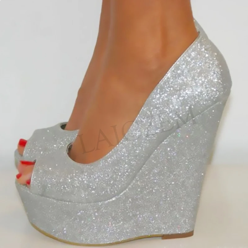 LAIGZEMженские свадебные туфли-лодочки на платформе и каблуке, расшитые блестками; вечерние Клубные туфли; женская обувь; zapatos mujer; большие размеры 34-47