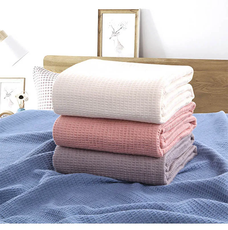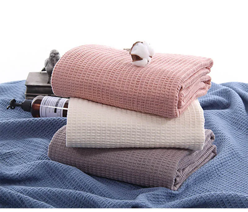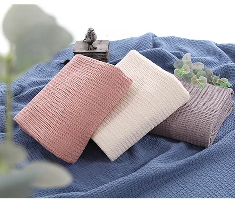 Японское хлопковое вафельное пледовое одеяло для кровати, дивана, розовое, голубое покрывало для детей и взрослых, летнее полотенце, одеяло, покрывало для кровати