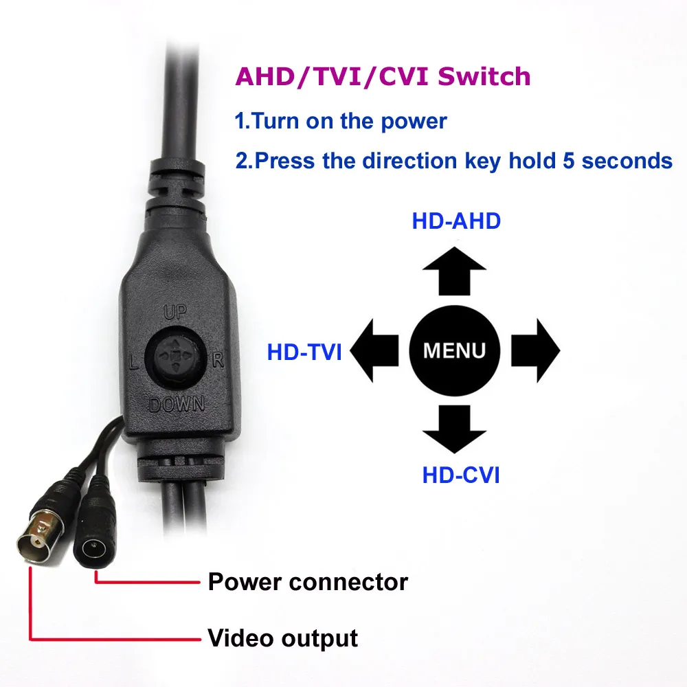 * Этот модуль камеры имеет 4 режима для видеовыхода:1080p AHD, 1080p CVI, 1080p TVI и CVBS * Режим по умолчанию-режим AHD 1080P, пожалуйста, измените соответствующий режим видео с помощью OSD кабеля в соответствии с вашим DVR.