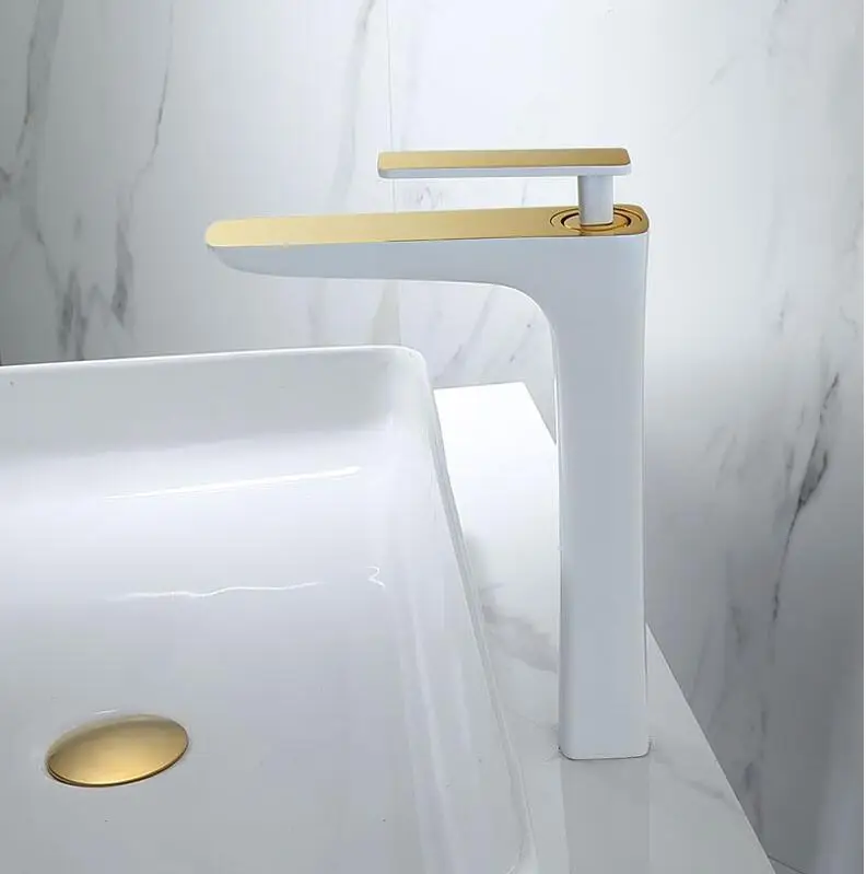 Смеситель для раковины из твердой латуни белого и золотого цветов, кран для раковины в ванную кран горячей и холодной воды