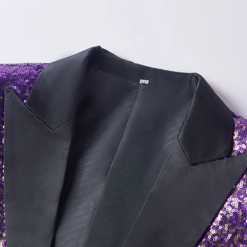 PYJTRL Модный Фиолетовый цветной бархатный блейзер с блестками, Муж...