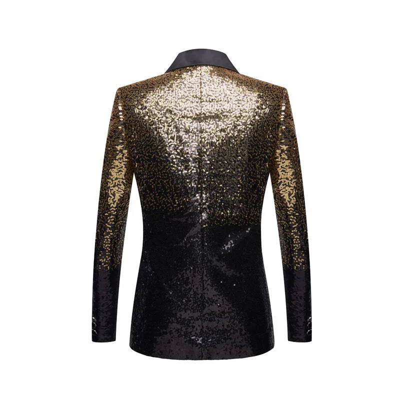 PYJTRL Мужская мода постепенное изменение золотой черный Slim Fit пиджак для банкета ночного клуба блейзеры для певцов свадебный смокинг жениха