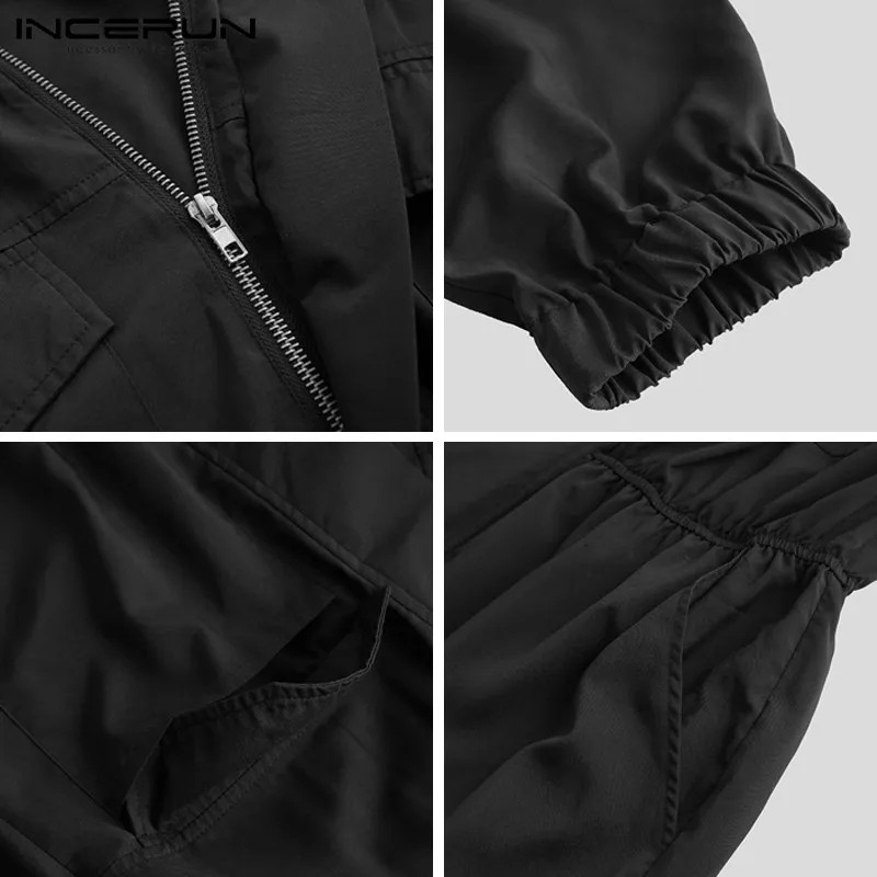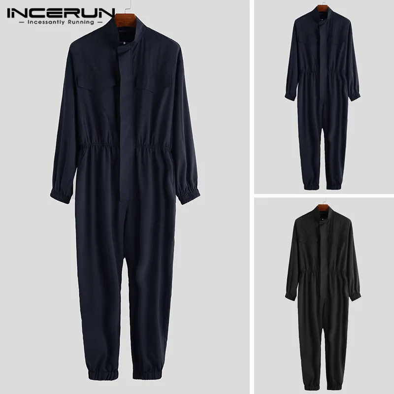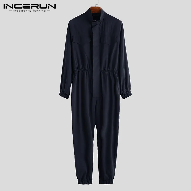 Комбинезон мужской INCERUN, с длинным рукавом, воротником в стиле хип-хоп, в японском ретро стиле, тонкий, из 9 предметов, однотонный, 2021