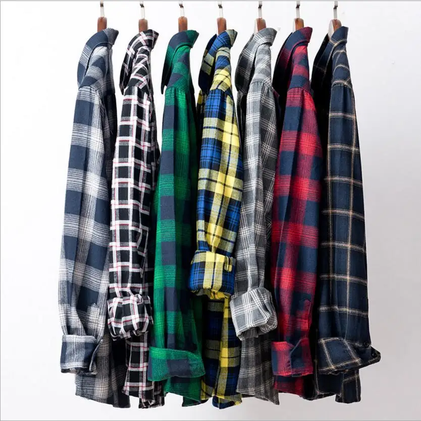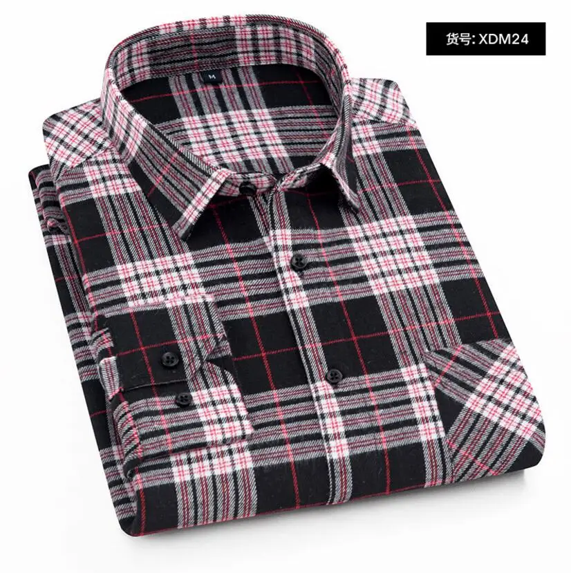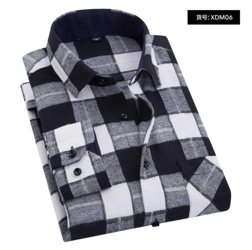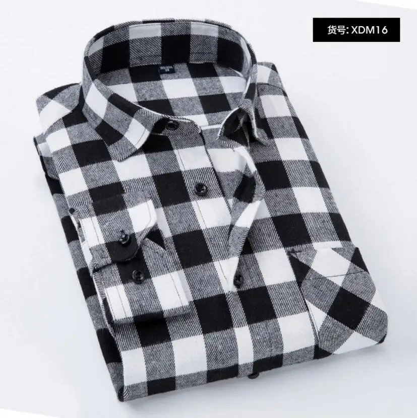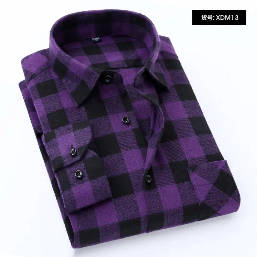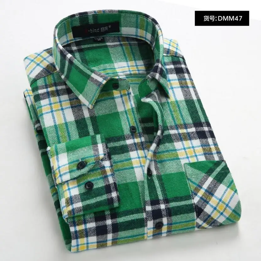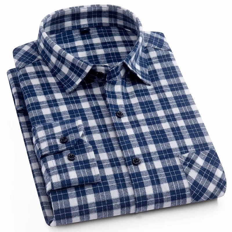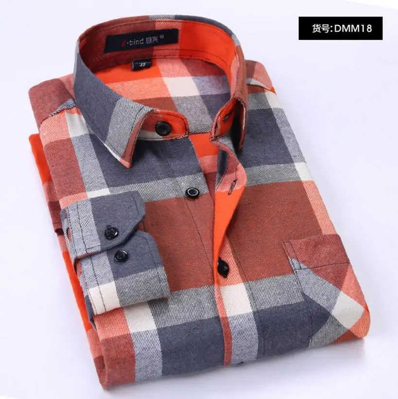 Рубашка Мужская Фланелевая в клетку, повседневная классическая сорочка, приталенный силуэт, длинный рукав, хлопок, весна-осень