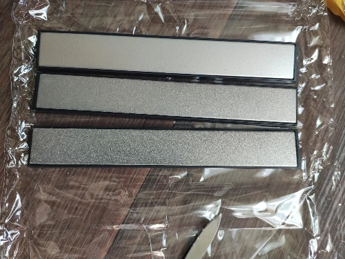 Доставка 31 день ,Трек отслеживается . Упакованы хорошо . По виду сделаны хорошо , пластиковое основание , к нему приклеена (на взгляд алюминиевая) пластина толщиной 1 мм. с нанесенной алмазной поверхностью . На алмазной поверхности посторонних вкраплений или большей гритности частиц не обнаружил , слой равномерный . По работе и насколько ножей хватит этих бланков в дополнении к отзыву .