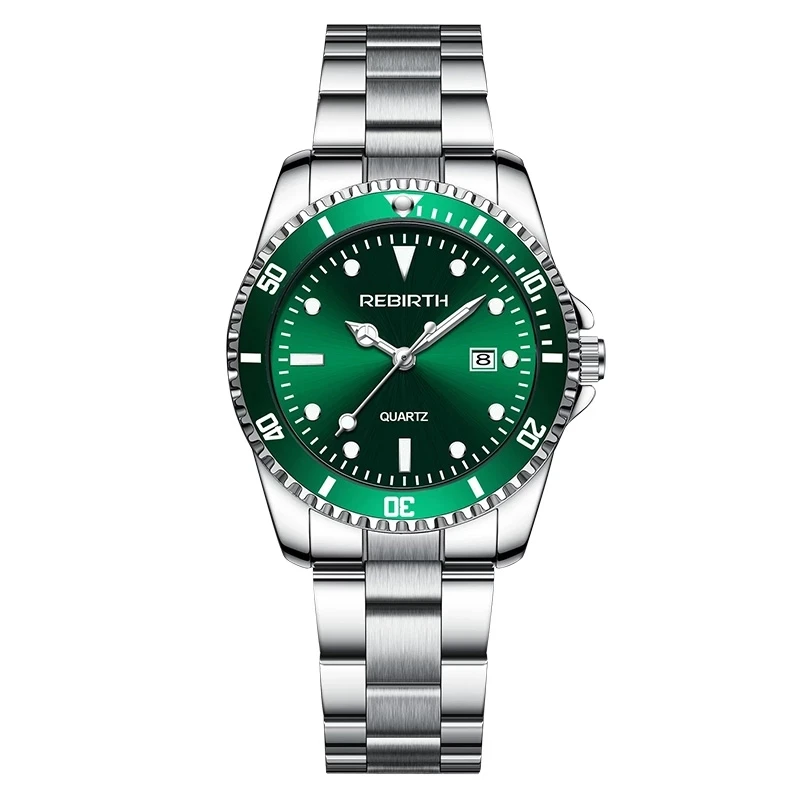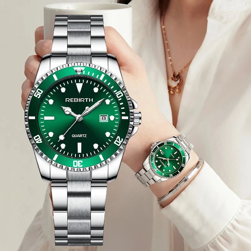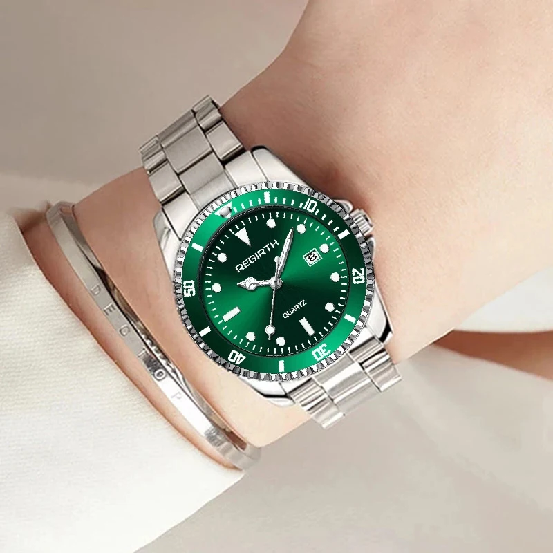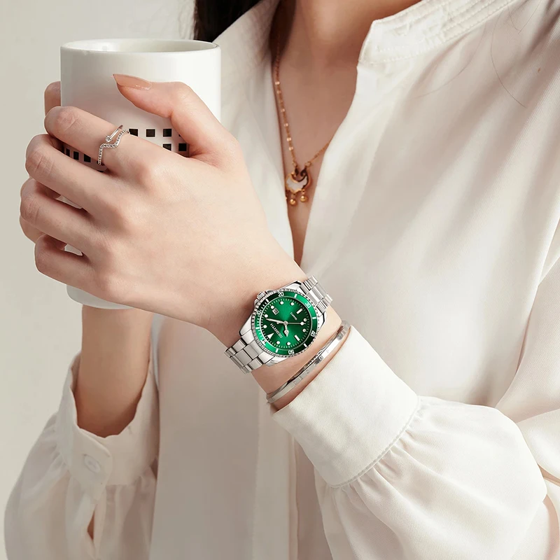 Часы женские кварцевые из нержавеющей стали, серебристые, зеленые