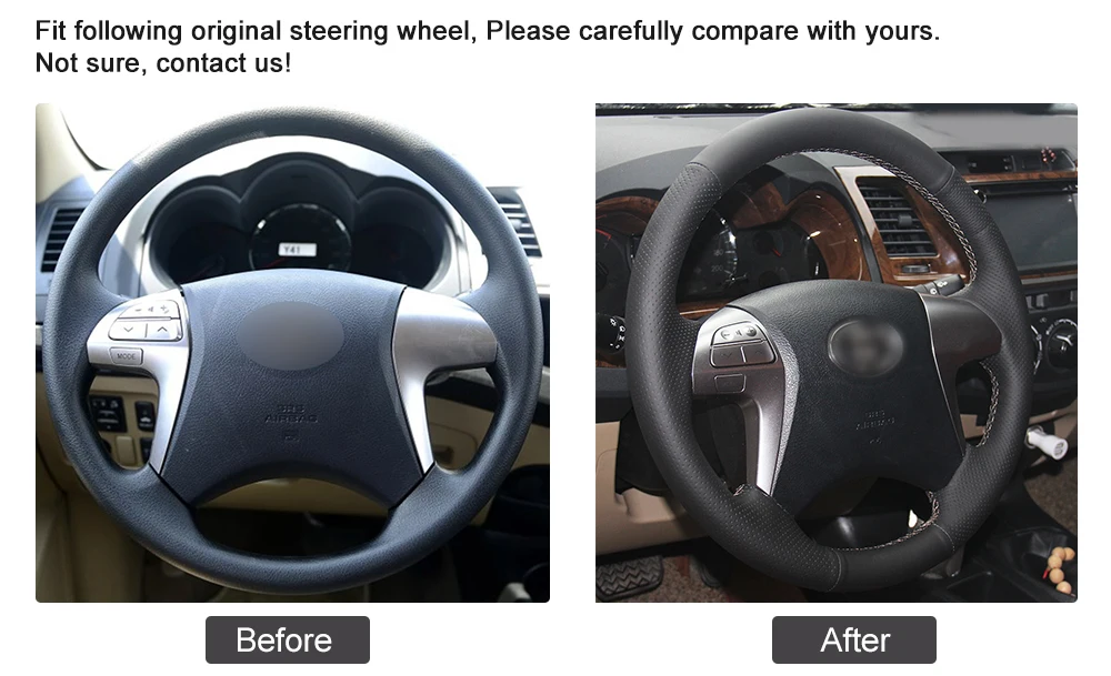 Подходящая модель автомобиля (для справки):ДляToyota Fortuner / Hilux 2012-2015.(Только для справки, пожалуйста, внимательно сравните свое рулевое колесо с оригинальной фотографией рулевого колеса, если вы не можете убедиться, пожалуйста, не стесняйтесь связаться с нами.)