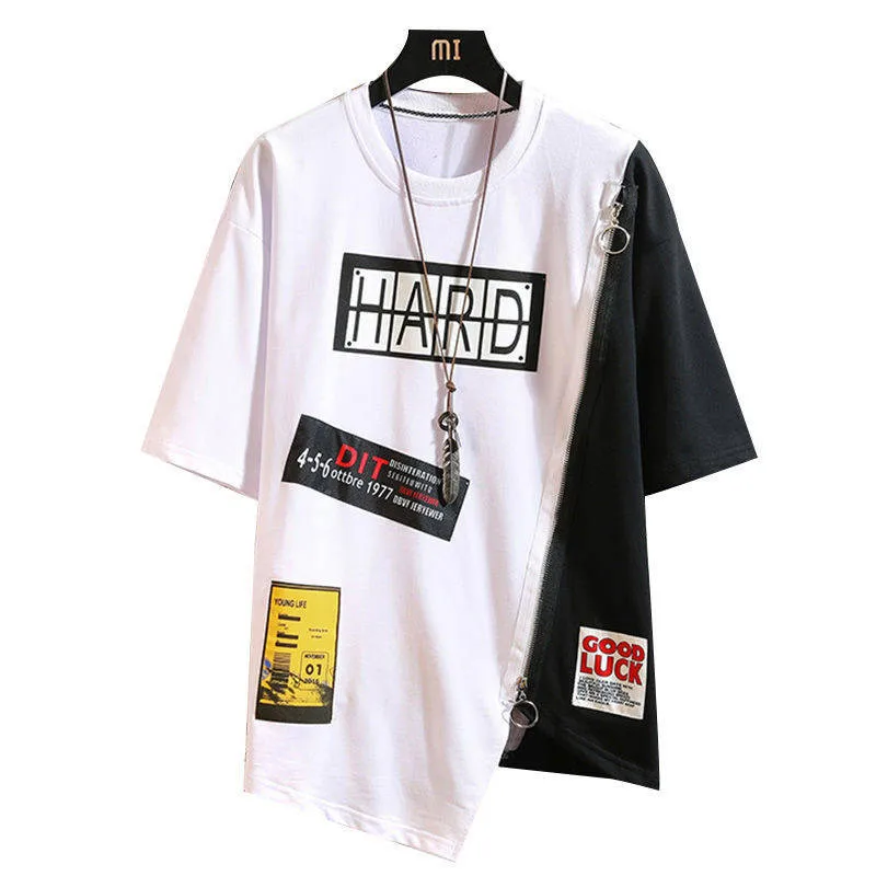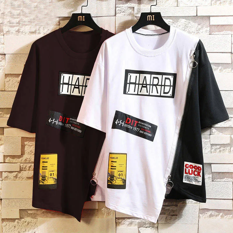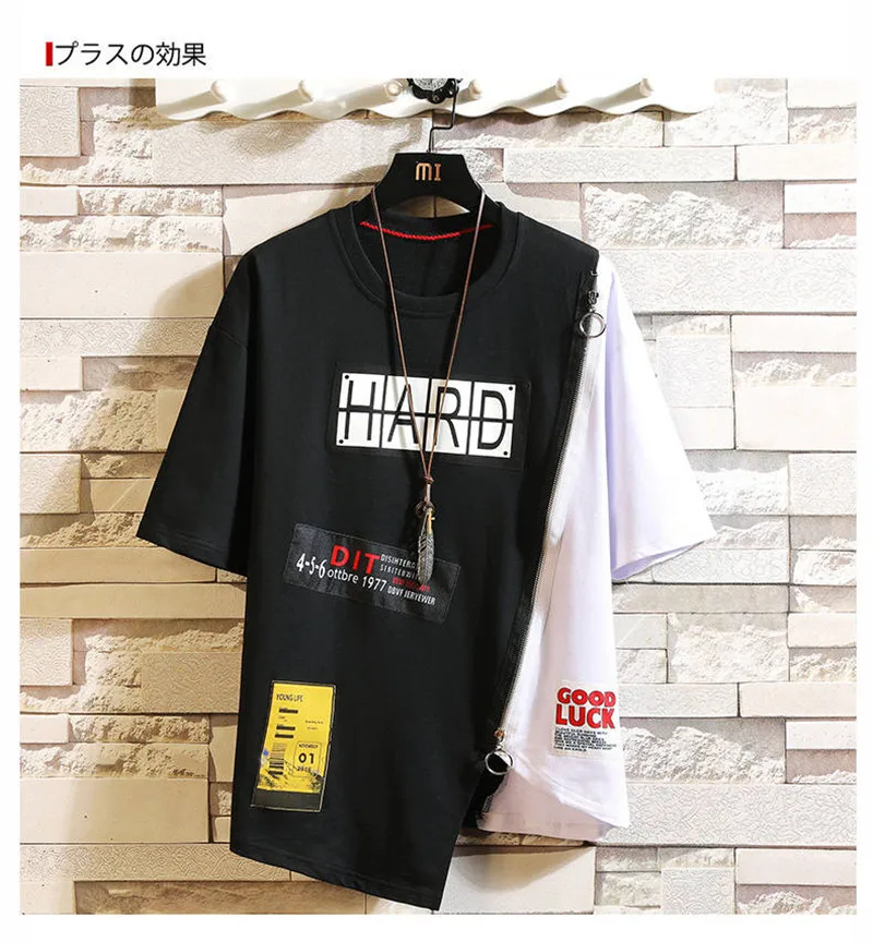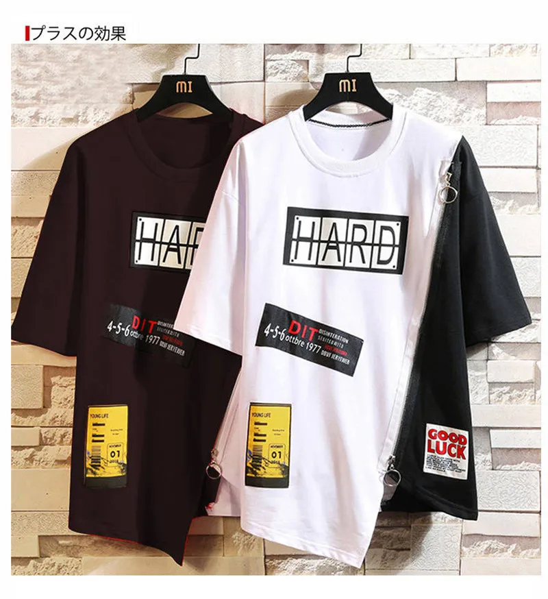 Футболка мужская оверсайз в стиле хип-хоп, повседневная тенниска на молнии, крутая майка свободного покроя в стиле панк и Японии, лето