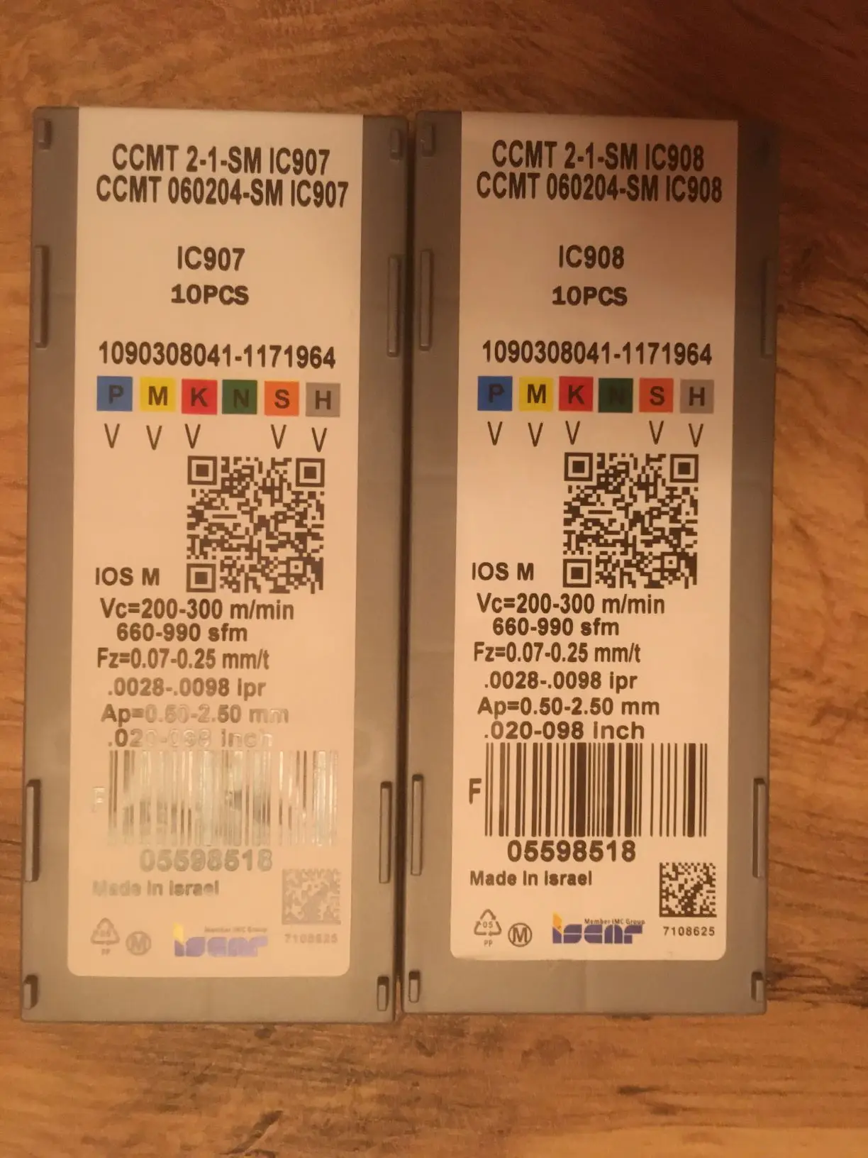 Заказывал такие не первый раз, брал IC907, до этого всегда использовал VP15TF и был доволен, но теперь однозначно только эти, вставки огонь, по стали работают отлично, чистота очень хорошая получается и выносливость у них гораздо лучше чем у VP15TF. Так же стружколом у них хорошо сделан, стружка четко отводится в сторону. Одной проточил уже довольно много стали, VP15TF уже бы давно загнулась, а эта еще в приличном состоянии. Покупкой очень доволен.