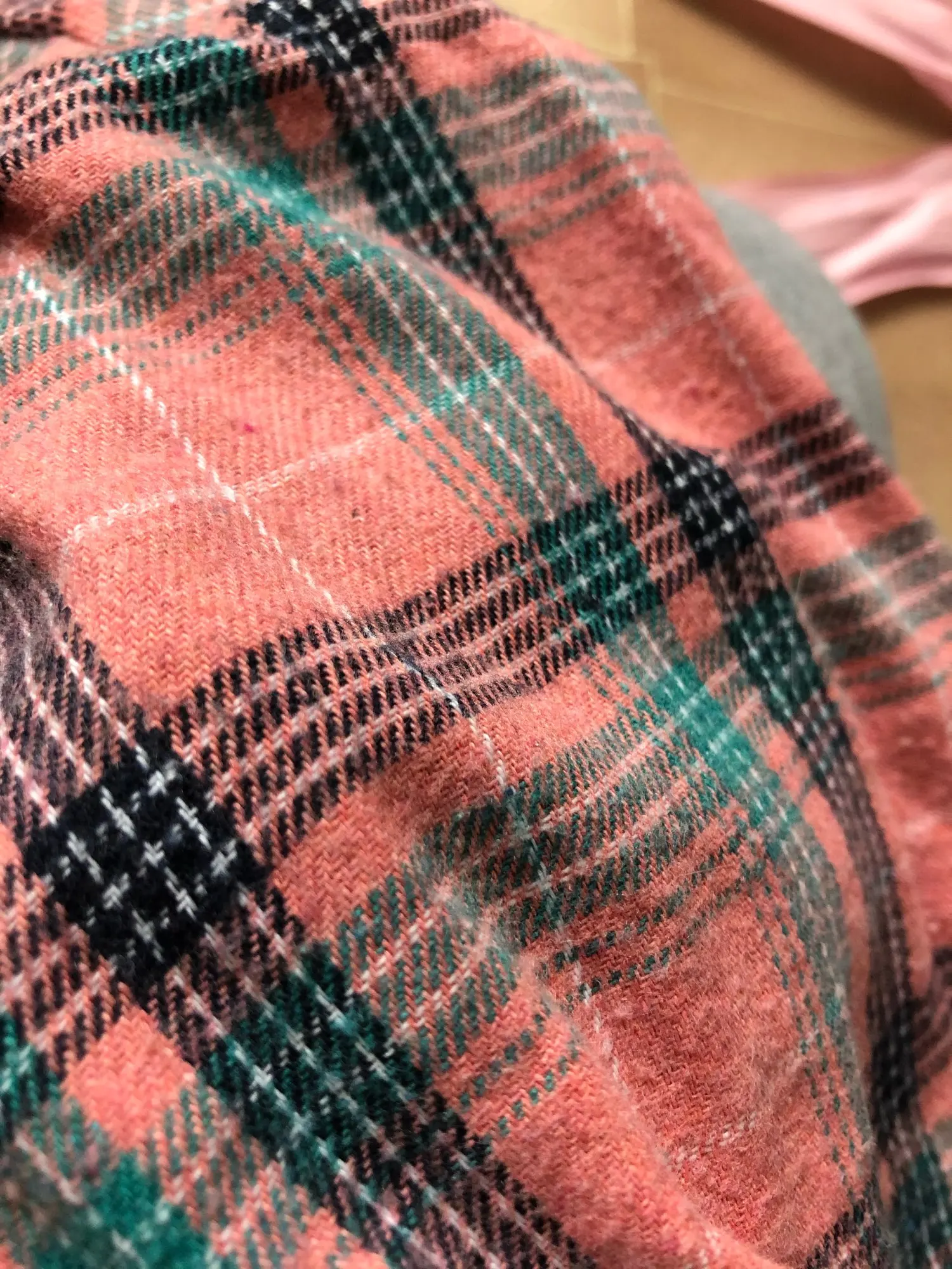 Выглядит точно как на изображении, действительно хорошее качество по цене, а клетчатый материал мягкий и хорошо сидит.