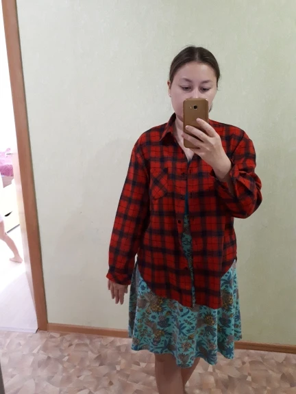 Рубашка классная и хорошего качества, расцветка как на фото) на свой размер М заказала L получился хороший оверсайз)