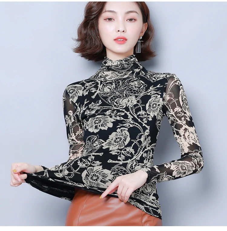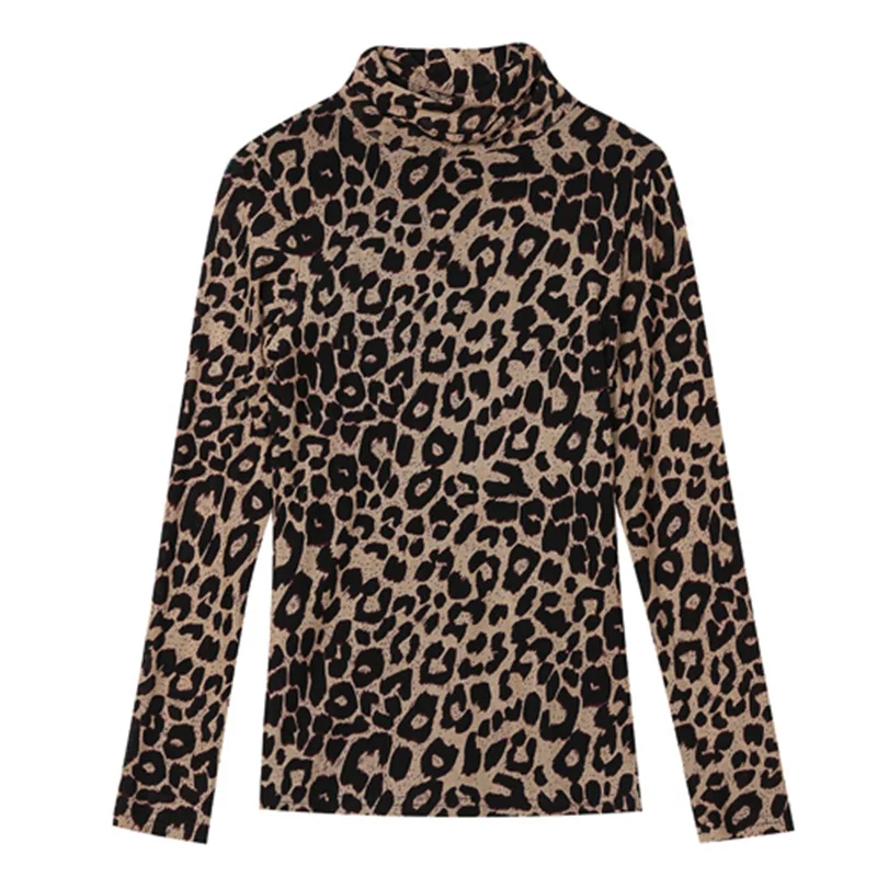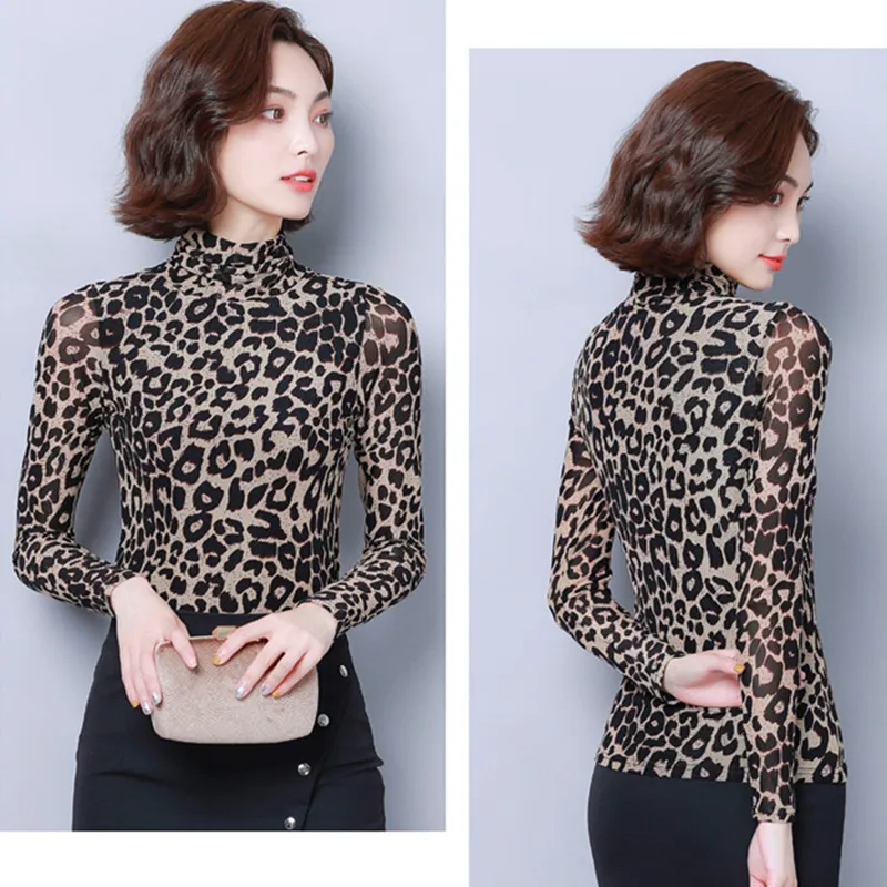 Животное с принтом Блузка Женщины Плюс Размер Повседневная рубашка с длинным рукавом Урожай Высокая шея Офисная работа Леопардовая блузка Женщины Весенние топы