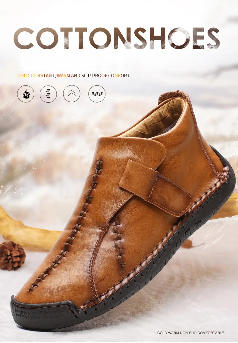Модные кожаные мужские ботинки, теплая плюшевая зимняя мужская повседневная обувь, высококачественные снежные ботинки из спилка, уличная теплая зимняя мужская обувь