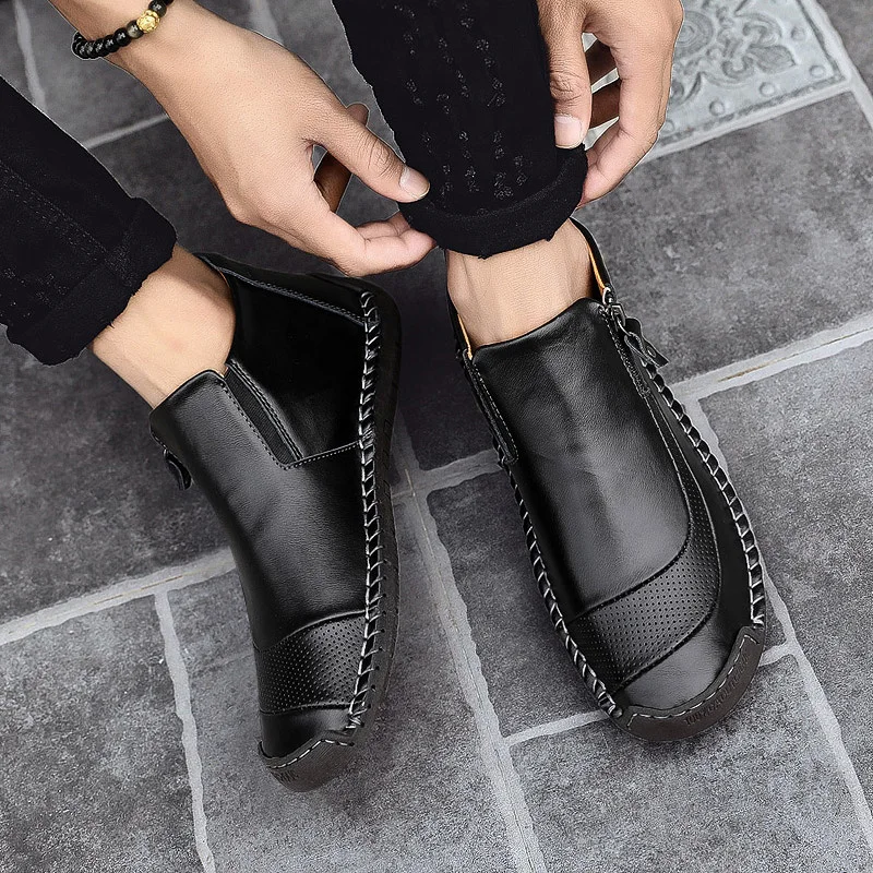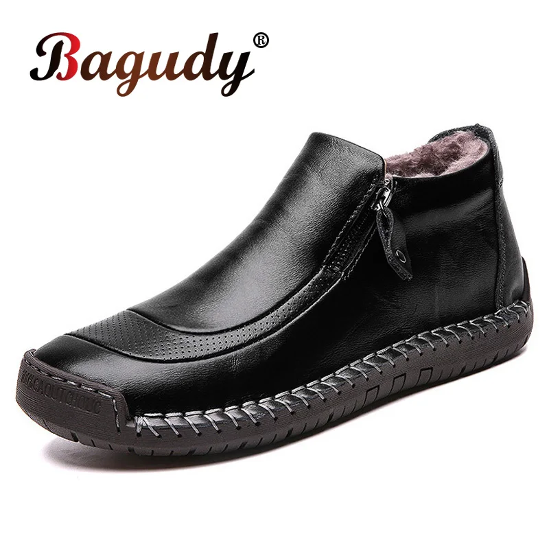 051502Fashion Leather Men Boots Warm Plush Winter Men Casual Shoes