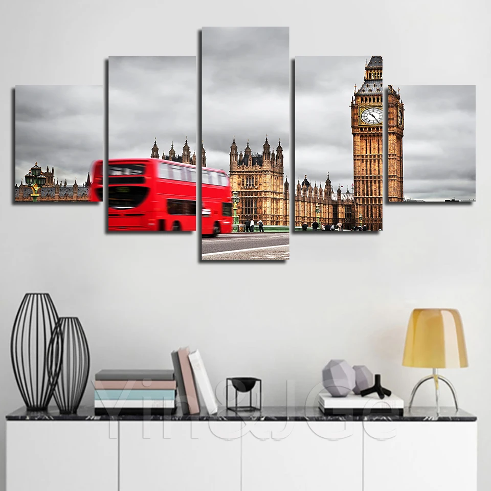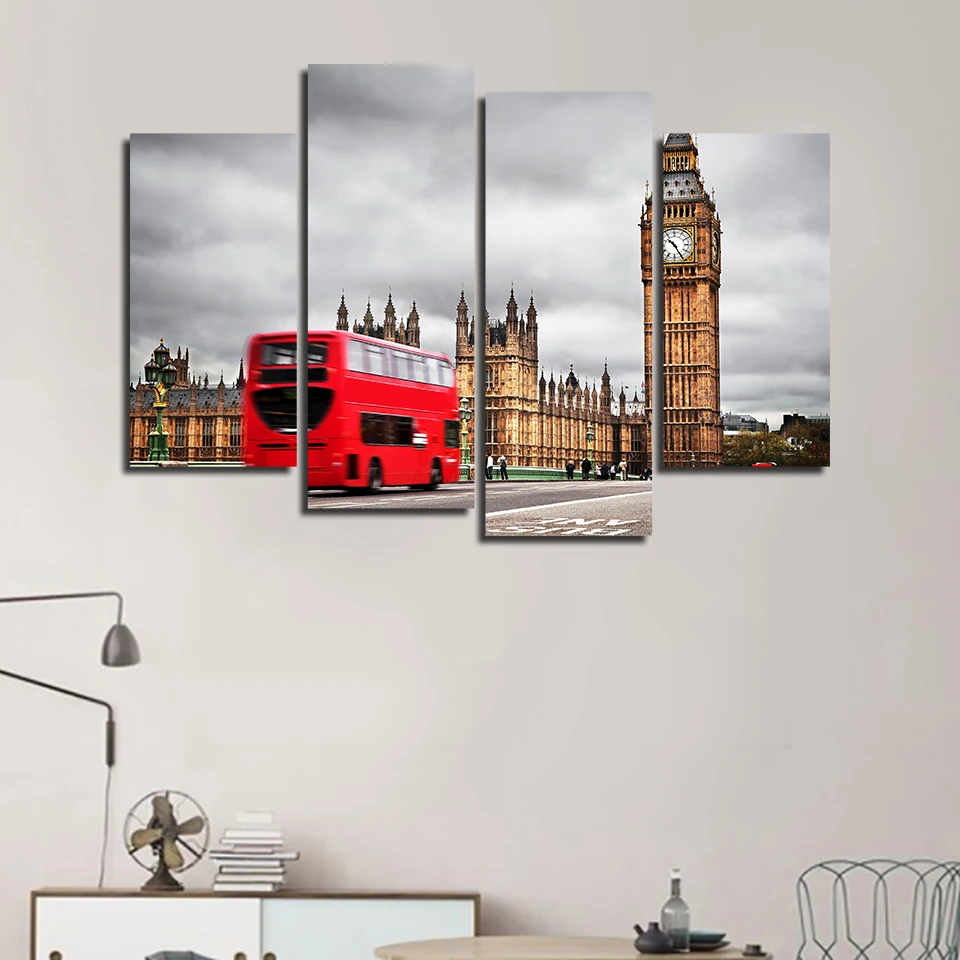 Домашний декор живопись холст печать лондонская улица плакат настенное искусство модульный Биг-Бен красный автобус изображение триптиха спальня фон рамка