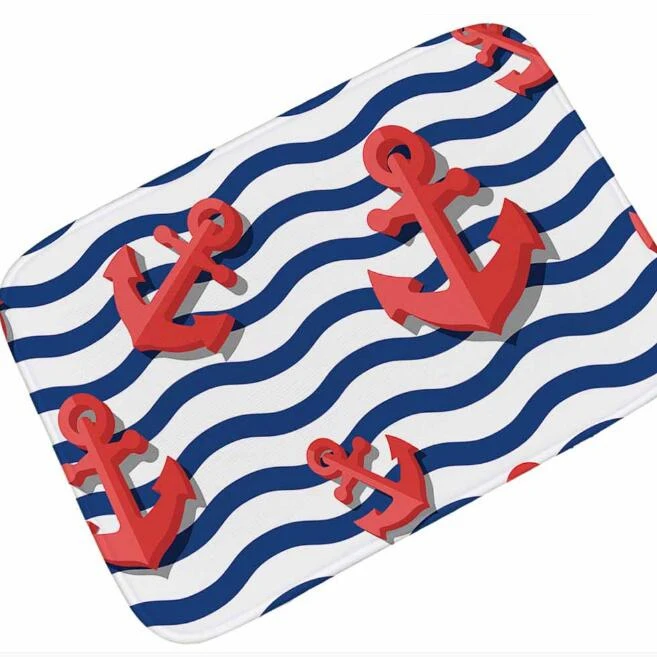 Шикарный морской темно-синий Якорный полосатый шевроновый коврик для ванной резиновый ковер для душа пляжный домик для декора