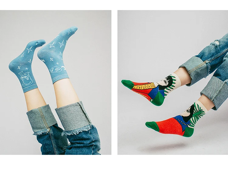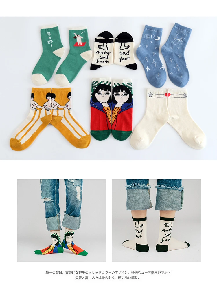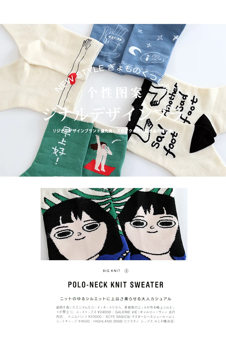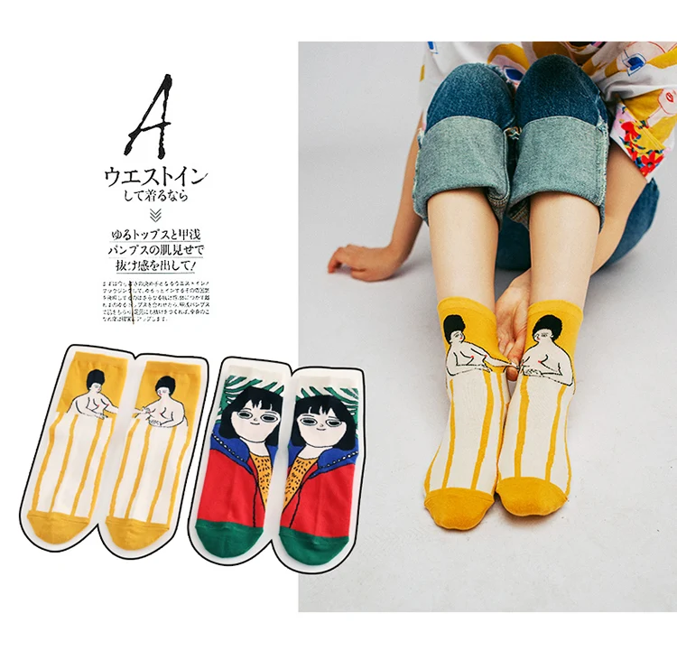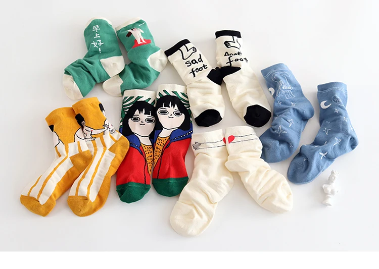 Носки женские в стиле Харадзюку, японская картина хлопок, простые с...