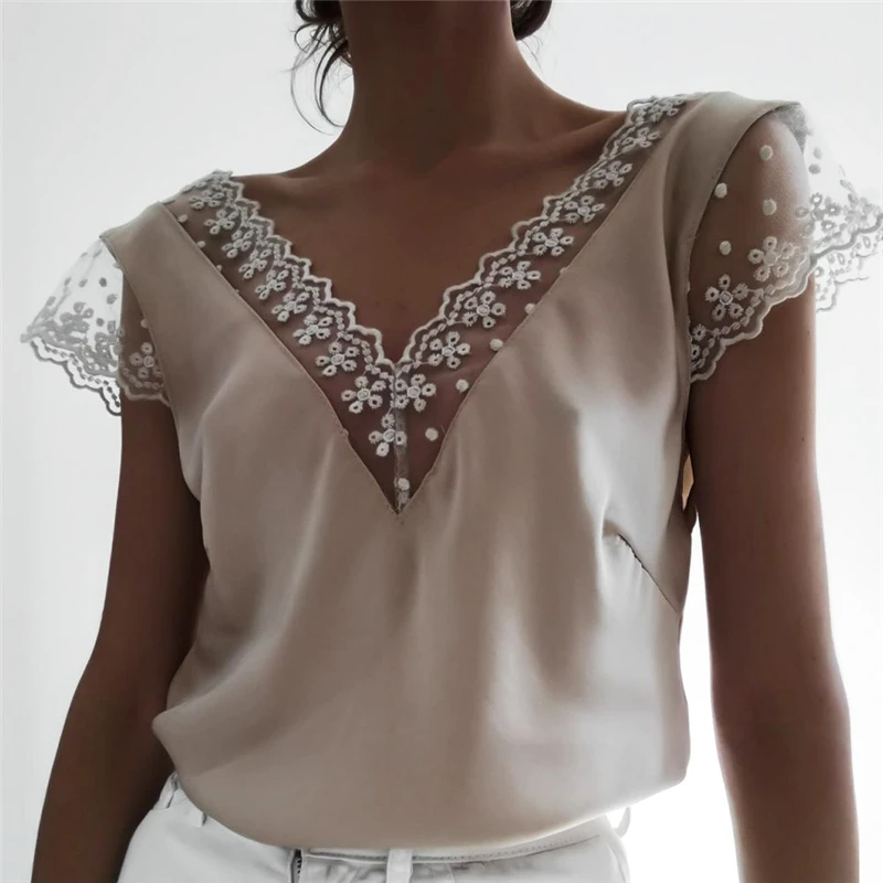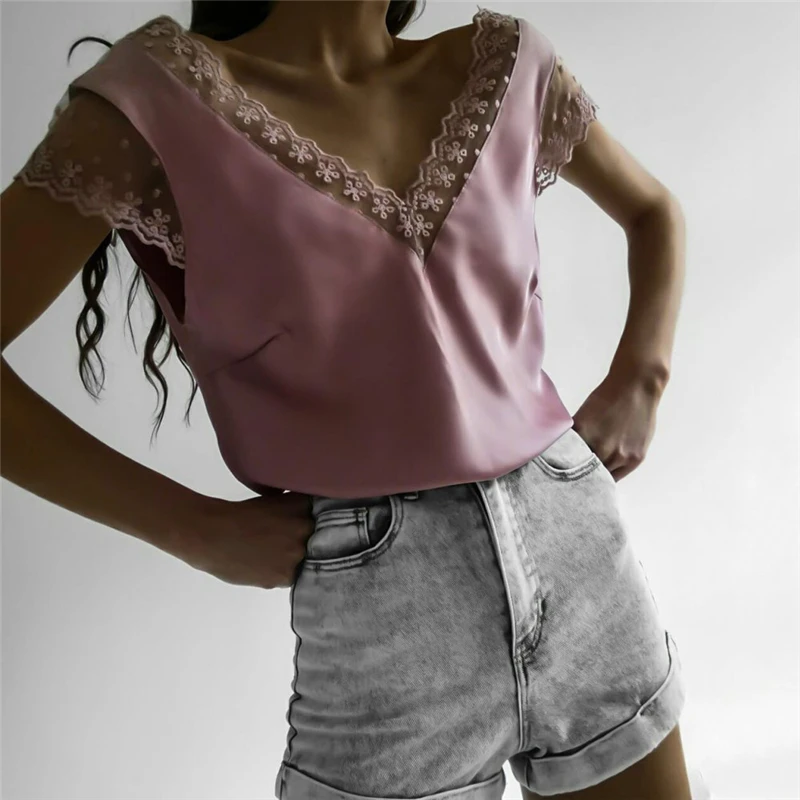 Женский кружевной топ без рукавов, Повседневная Свободная майка с V-образным вырезом, Элегантная классическая уличная одежда, лето 2019