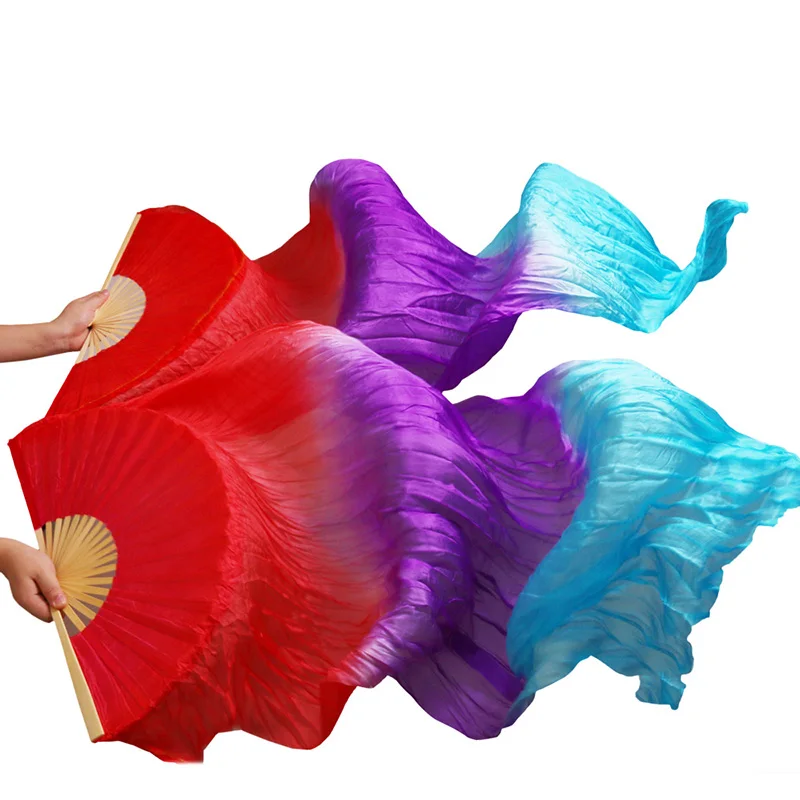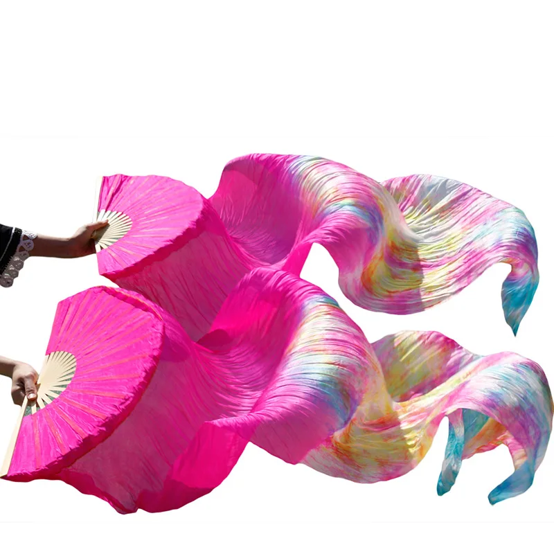 Веер для танца живота, 1 пара, крашеная фата ручной работы из 100% натурального шелкаИмитация Шелковый веер для танца, китайский Шелковый веер, 1 пара