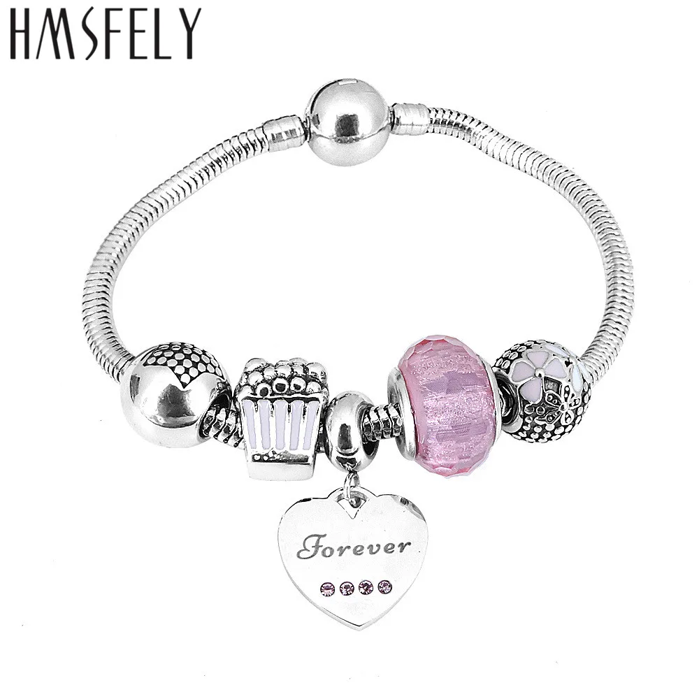 HMSFELY европейские шармы сердце бусины для DIY Шарм браслет ювелир...