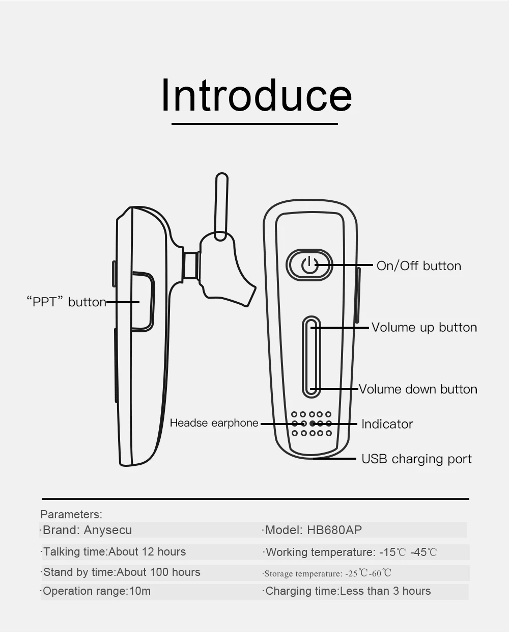 Беспроводная гарнитура PTT HB680AP, беспроводная гарнитура с микрофоном, работает с Zello для систем Android и IOS