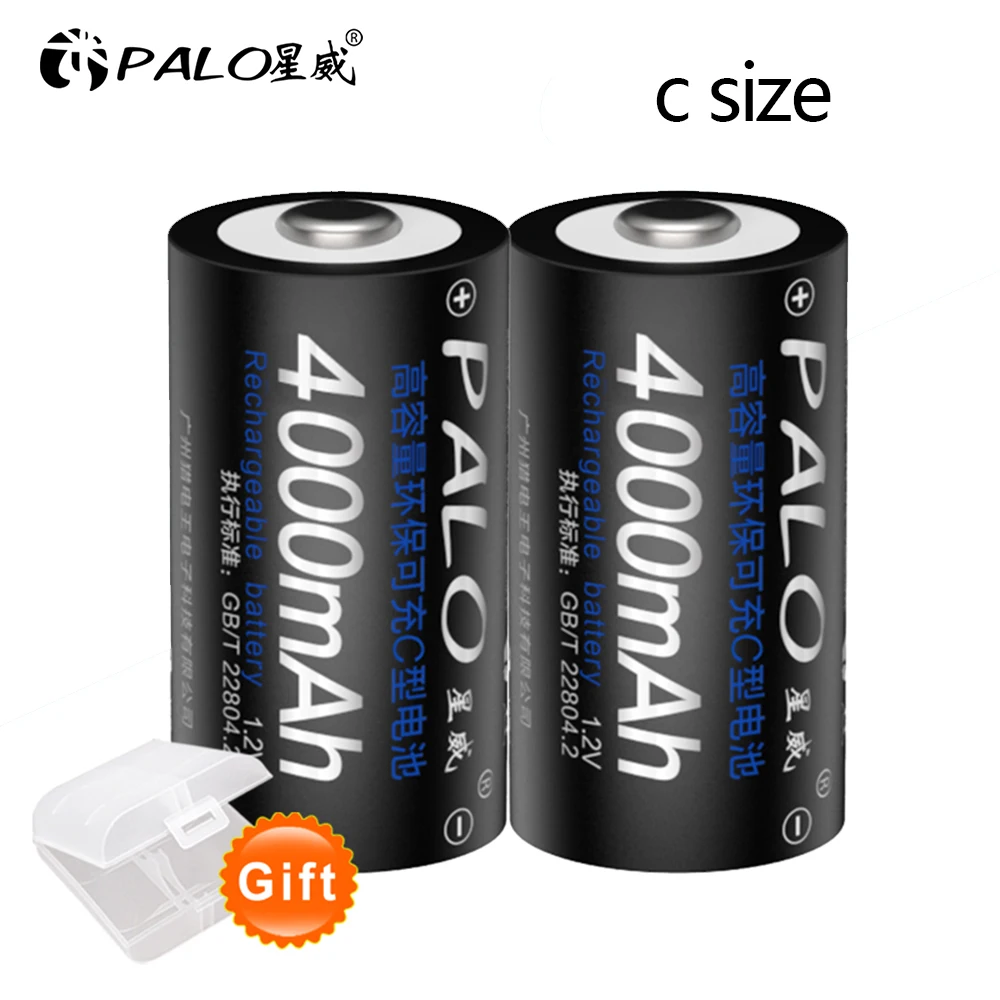 Аккумуляторная батарея PALO, 2 шт., R14 C, размер C, перезаряжаемая батарея типа C, 1,2 в, 4000 мАч, никель-металлогидридные аккумуляторы высокой емкости