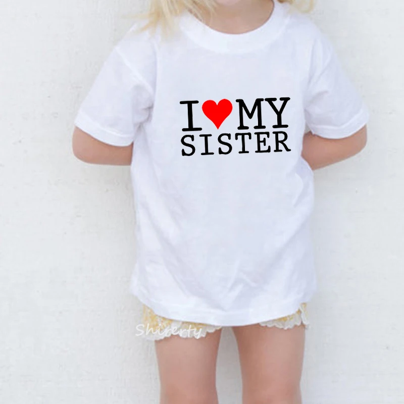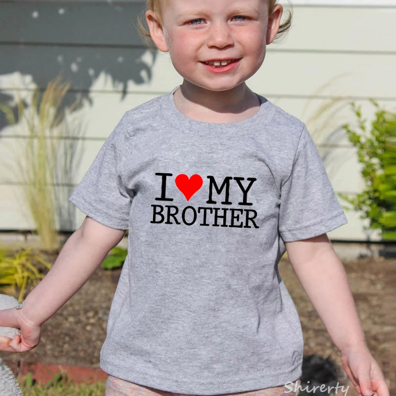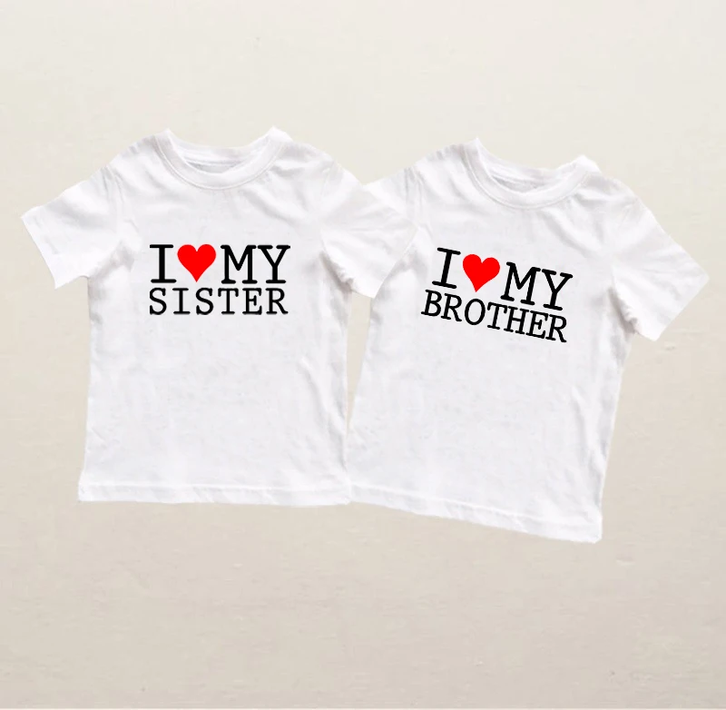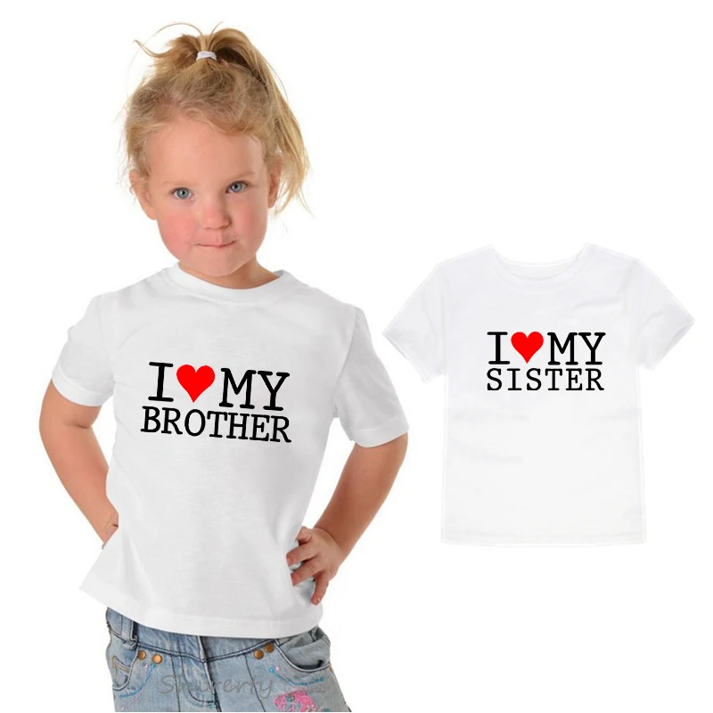 Футболка детская хлопковая с коротким рукавом, круглым вырезом и надписью I Love My Sister Brother